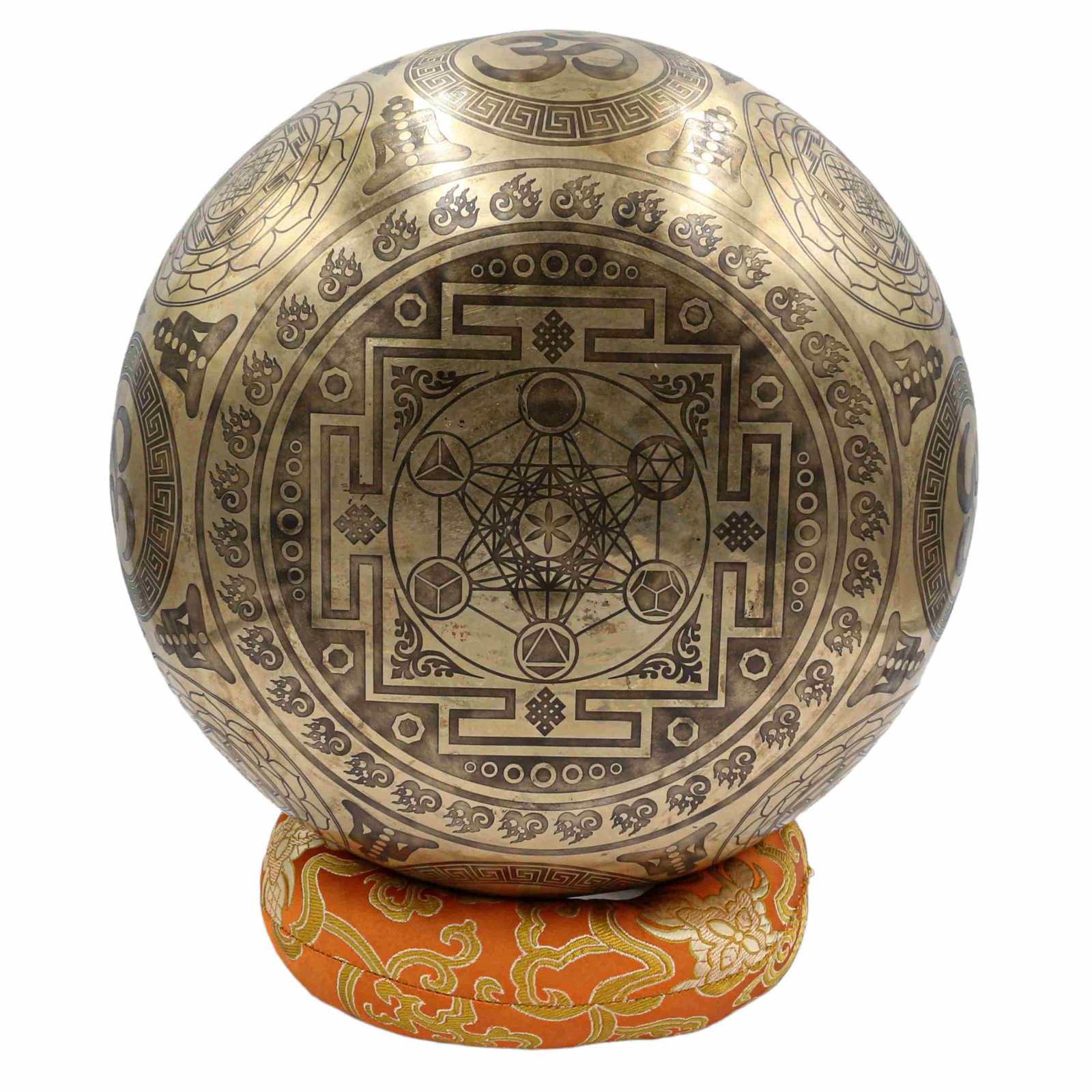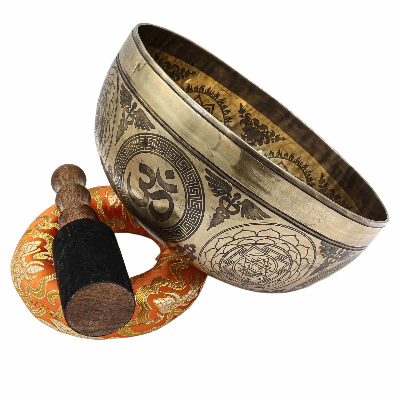 Buddhist Hand Beaten Jambati Singing Bowl, with Super Fine Etching Carving, Select Accessories |