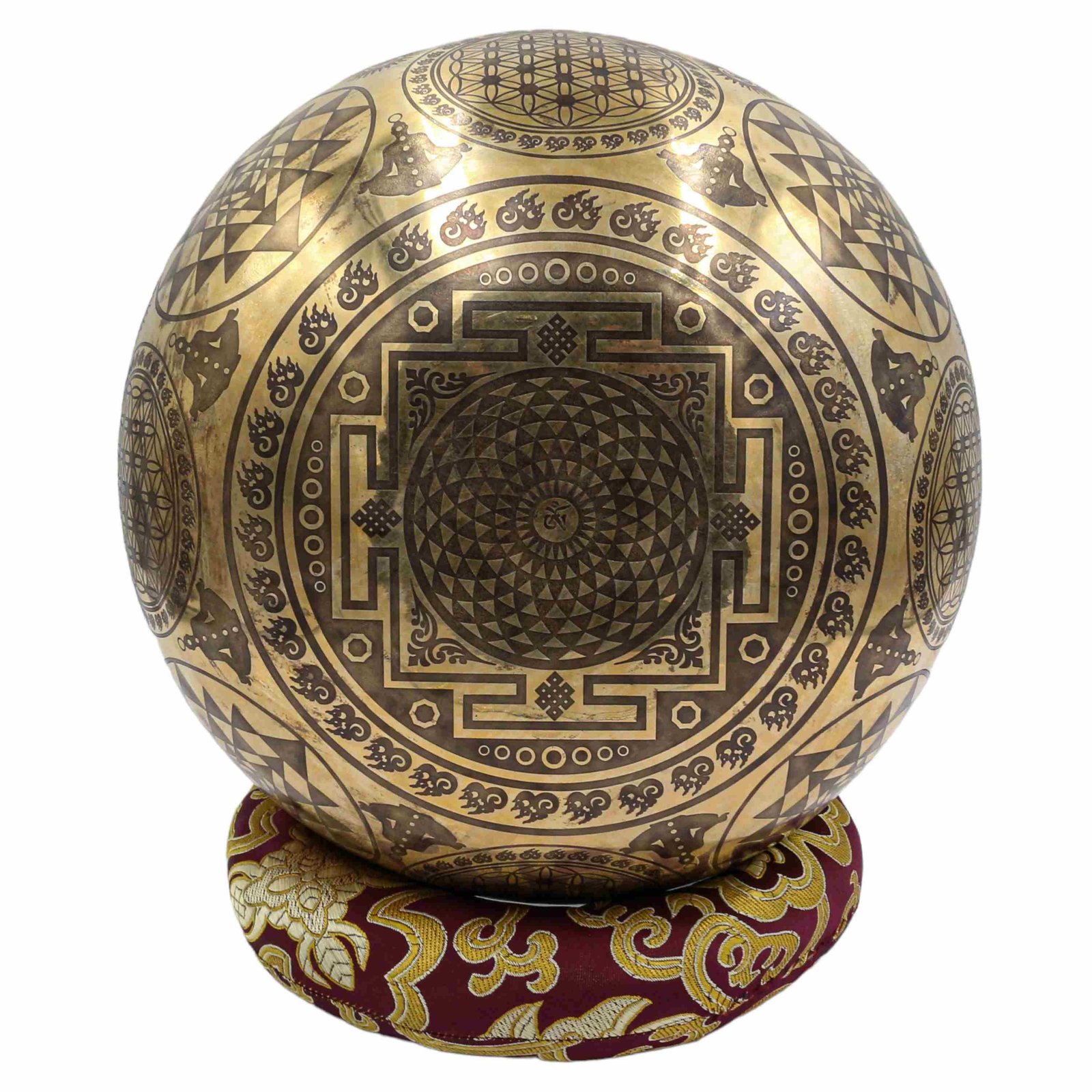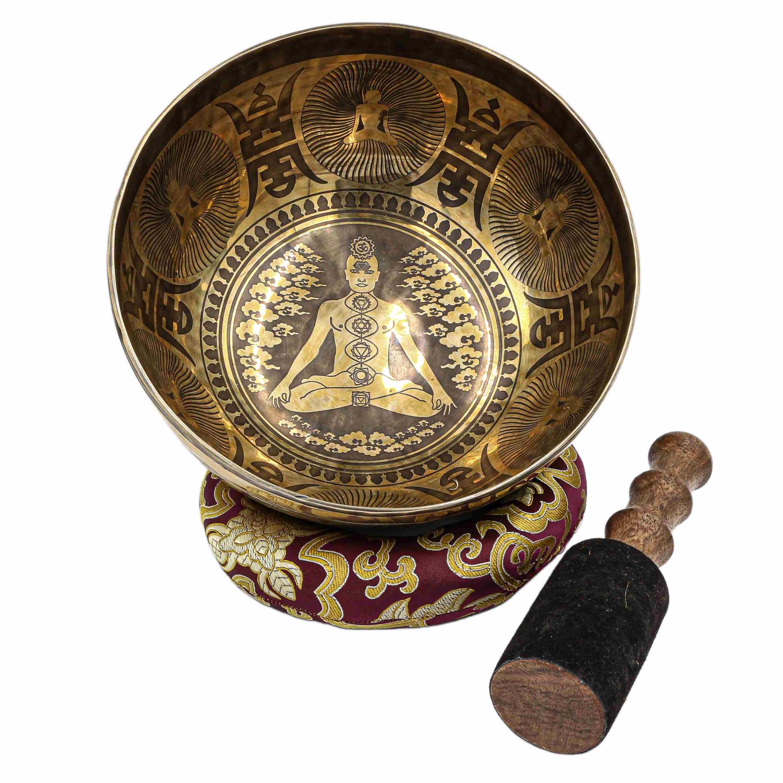 Buddhist Hand Beaten Jambati Singing Bowl, with Super Fine Etching Carving, Yoga Man, Select Accessories |