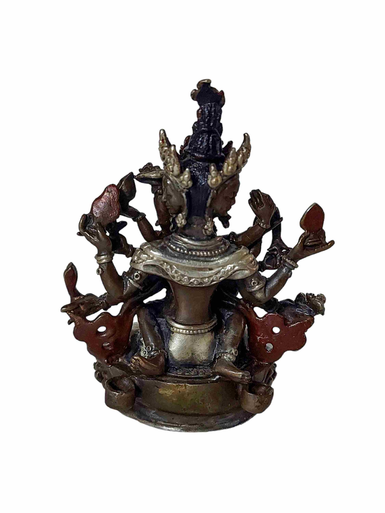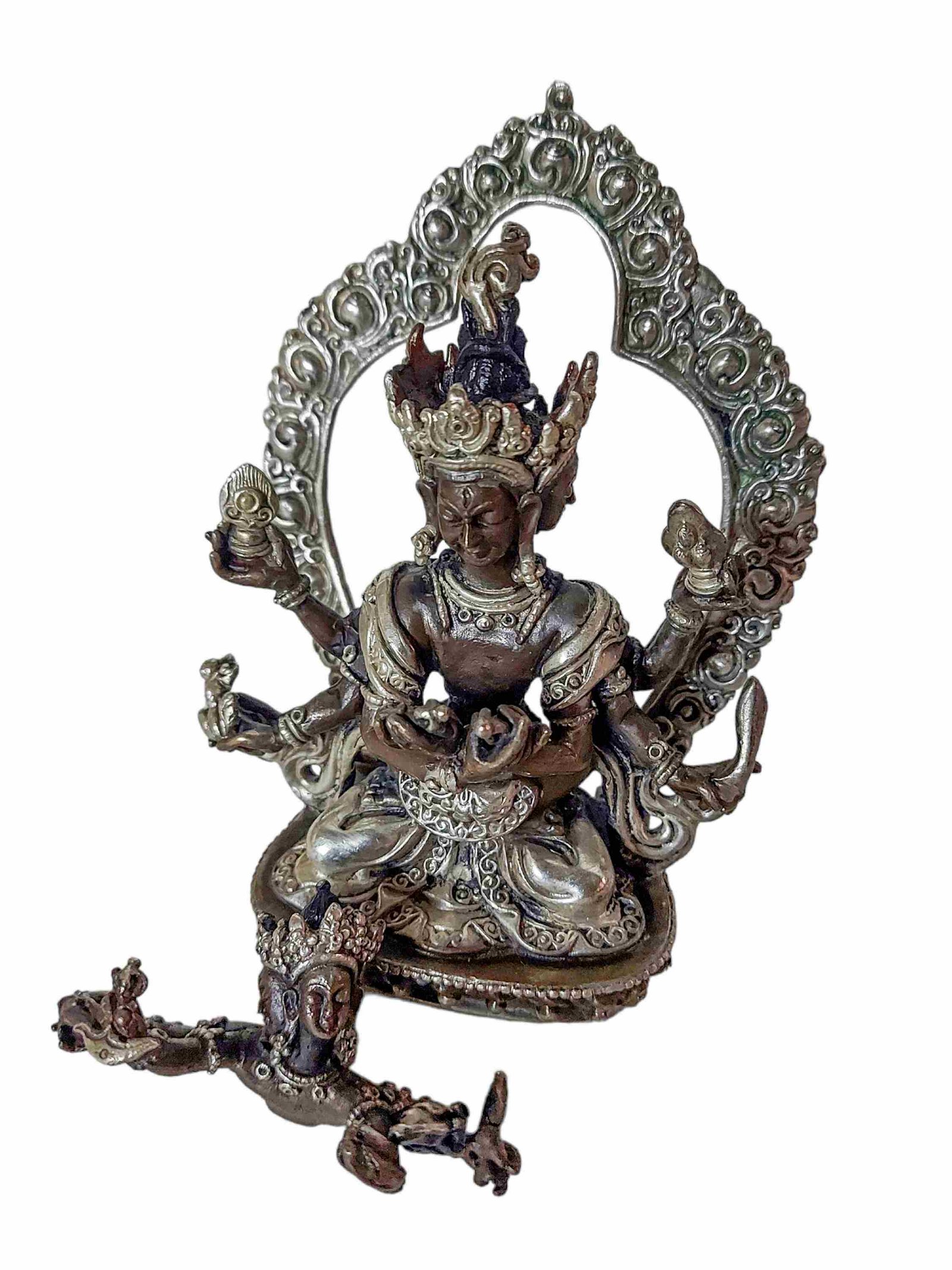Buddhist Statue of Guhyasamaja, Silver and Chocolate Oxidized , Supreme Deity of the Esoteric Community, Representing Unity and Enlightenment