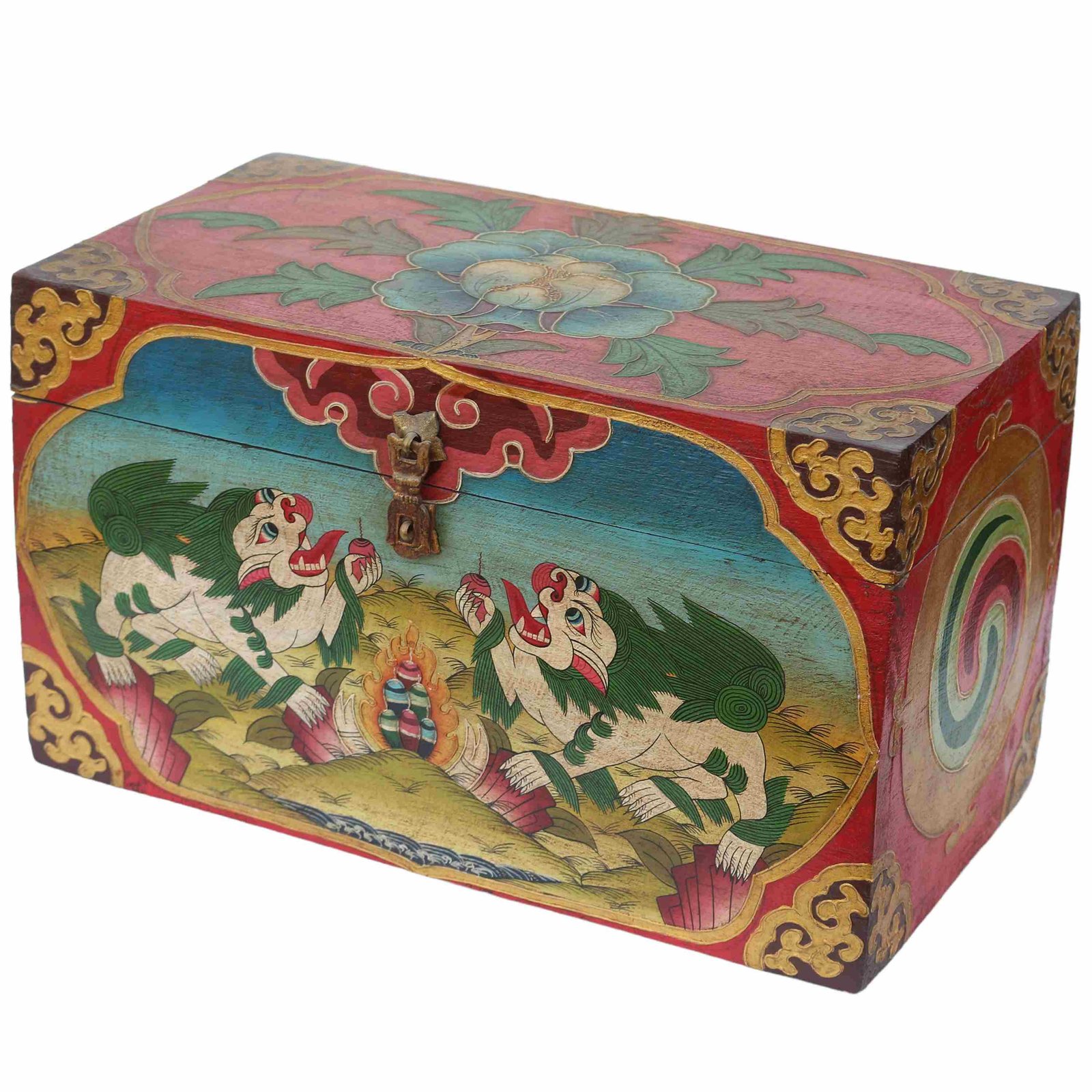 A Tibetan wooden box is a handcrafted storage container made from wood and often adorned with intricate Tibetan motifs and vibrant colors. These boxes are typically crafted by skilled artisans using traditional techniques passed down through generations. The decorations on the box usually include symbols of good fortune, such as lotus flowers, endless knots, dragons, or mythical creatures, and are painted in vivid hues like red, blue, green, and gold. These motifs not only add to the aesthetic appeal but also carry significant cultural and spiritual meanings in Tibetan Buddhism. Read More