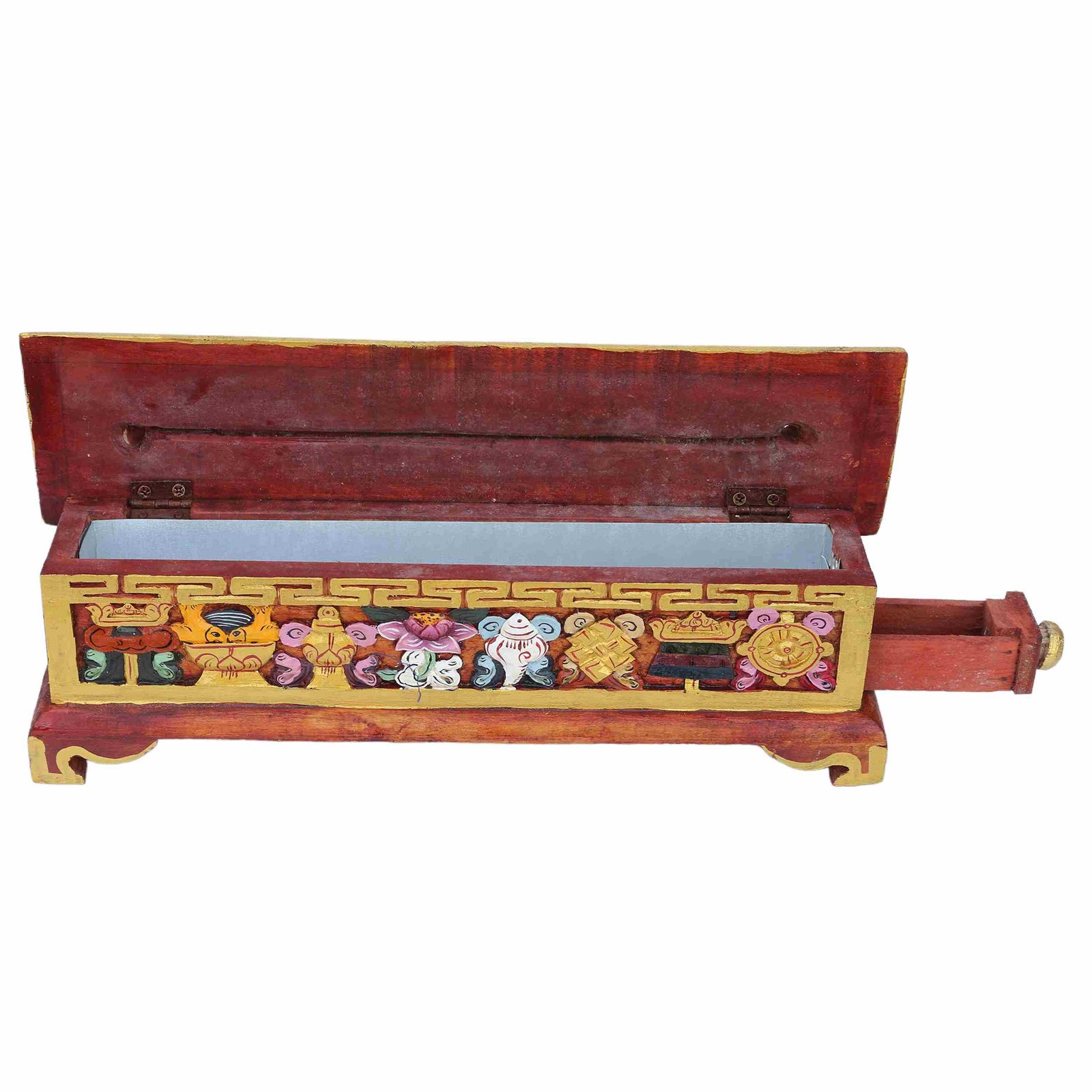 Wooden Incense Burner with Traditional Tibetan Painting , Used to purify the surroundings, symbolizing devotion and the sacred nature of offerings