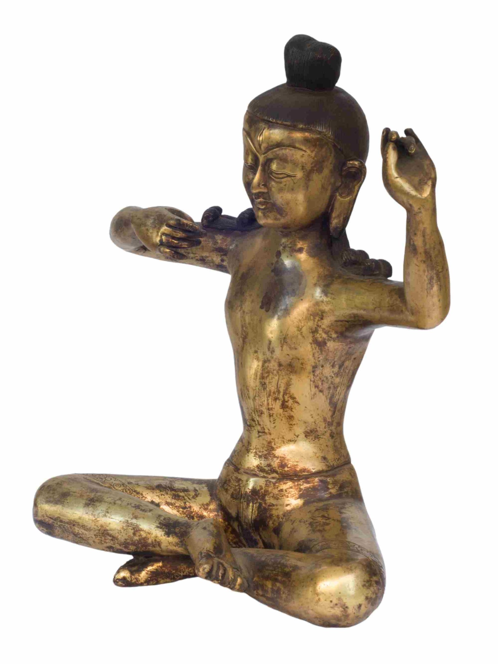The Buddha has full gold plated antique finishing. This finishing is a combination of fire mercury gold plating and antique finishing. This traditional technique involves the application of a genuine layer of gold onto the Buddha using the time-honored process of mercury gold plating. Skilled artisans meticulously handle the amalgamation of gold with mercury, ensuring precise application and a truly authentic result. To enhance its charm further, the Buddha undergoes an antique finishing process. This meticulous treatment adds a touch of age and character to the gold plating, creating a sense of antiquity. Through careful craftsmanship and the application of specialized techniques, the Buddha acquires a beautifully aged appearance that adds depth and uniqueness to its overall aesthetic. Read More