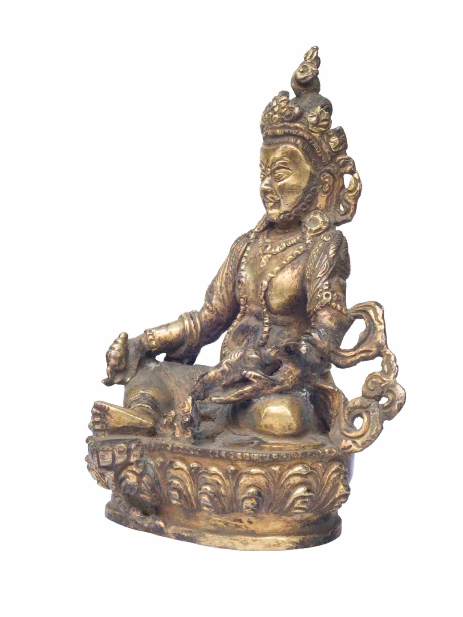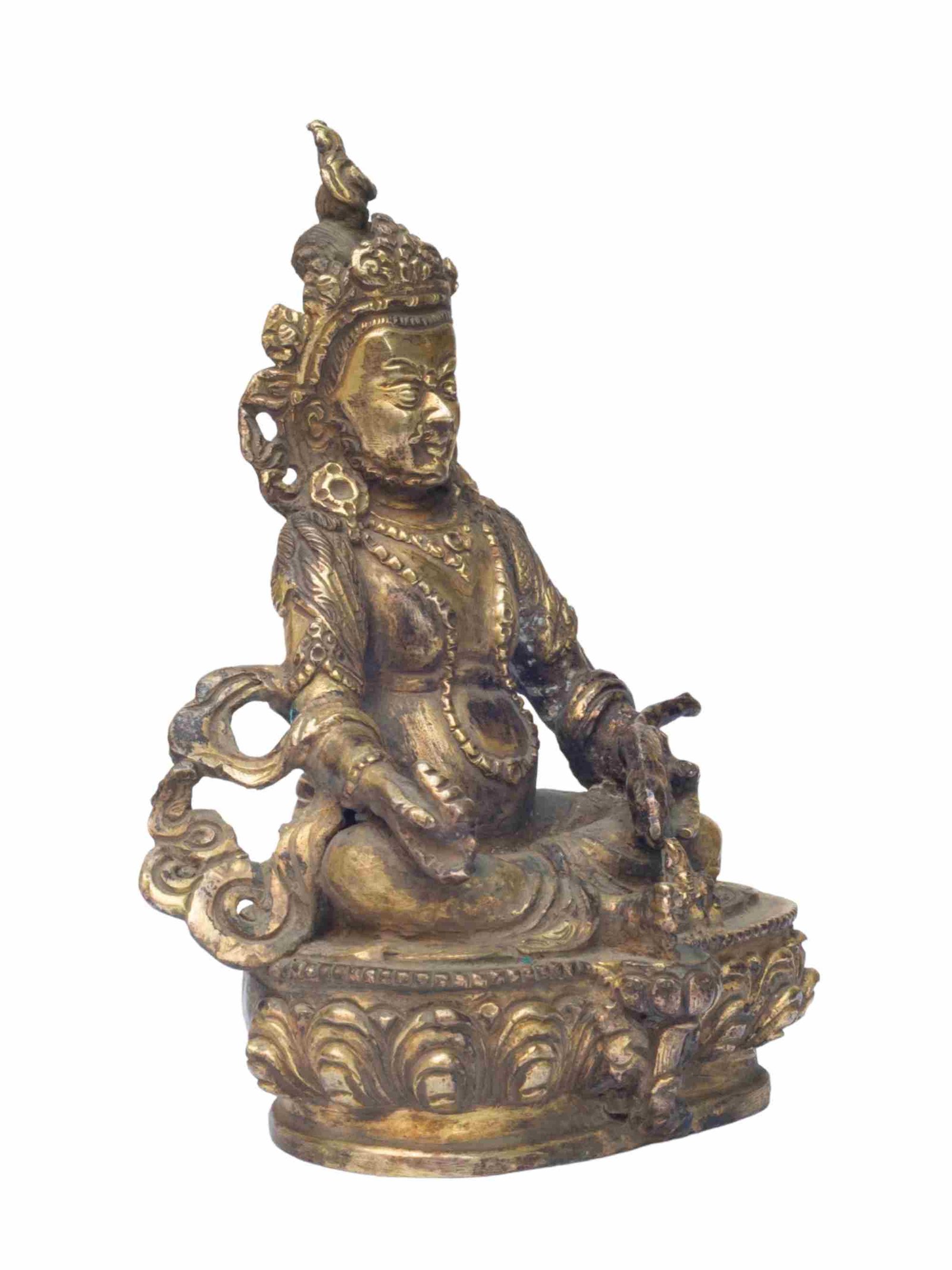 Buddhist Handmade Statue of Yellow Jambhala, Gold Plated, Antique Finishing, HIgh Quality , fostering generosity and abundance