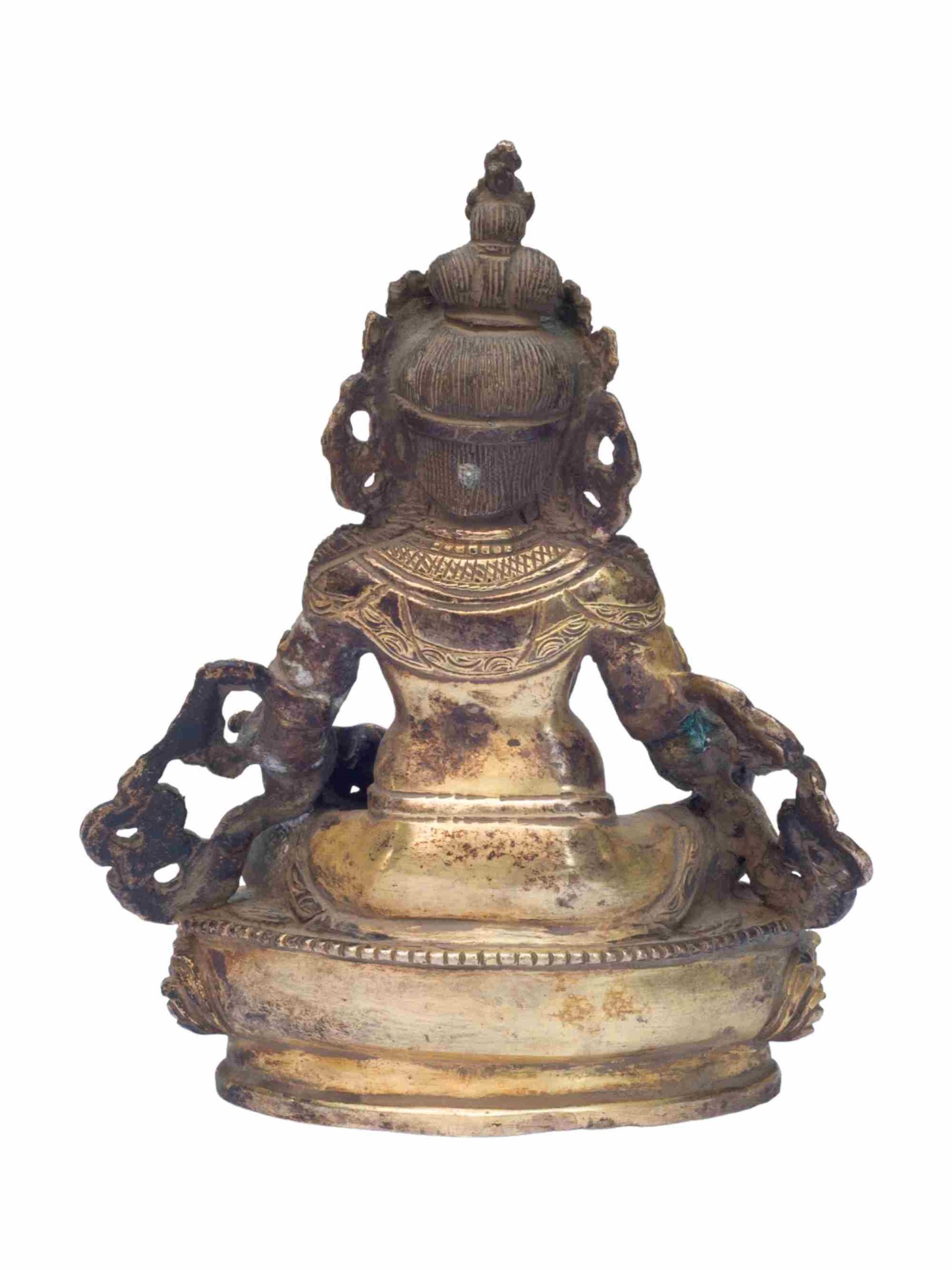 The Yellow Jambhala has full gold plated antique finishing. This finishing is a combination of fire mercury gold plating and antique finishing. This traditional technique involves the application of a genuine layer of gold onto the Yellow Jambhala using the time-honored process of mercury gold plating. Skilled artisans meticulously handle the amalgamation of gold with mercury, ensuring precise application and a truly authentic result. To enhance its charm further, the Yellow Jambhala undergoes an antique finishing process. This meticulous treatment adds a touch of age and character to the gold plating, creating a sense of antiquity. Through careful craftsmanship and the application of specialized techniques, the Yellow Jambhala acquires a beautifully aged appearance that adds depth and uniqueness to its overall aesthetic. Read More