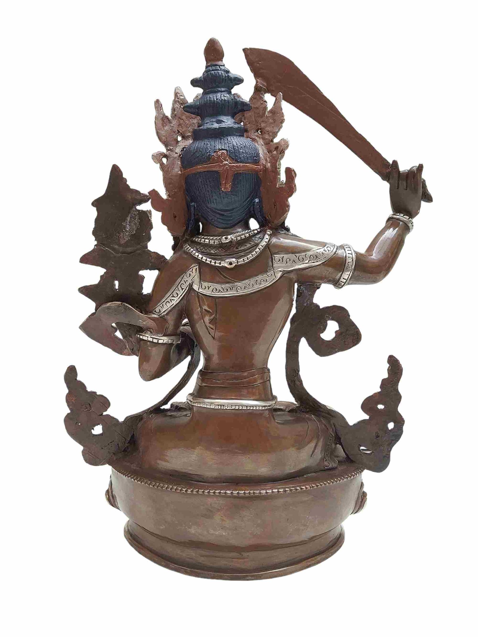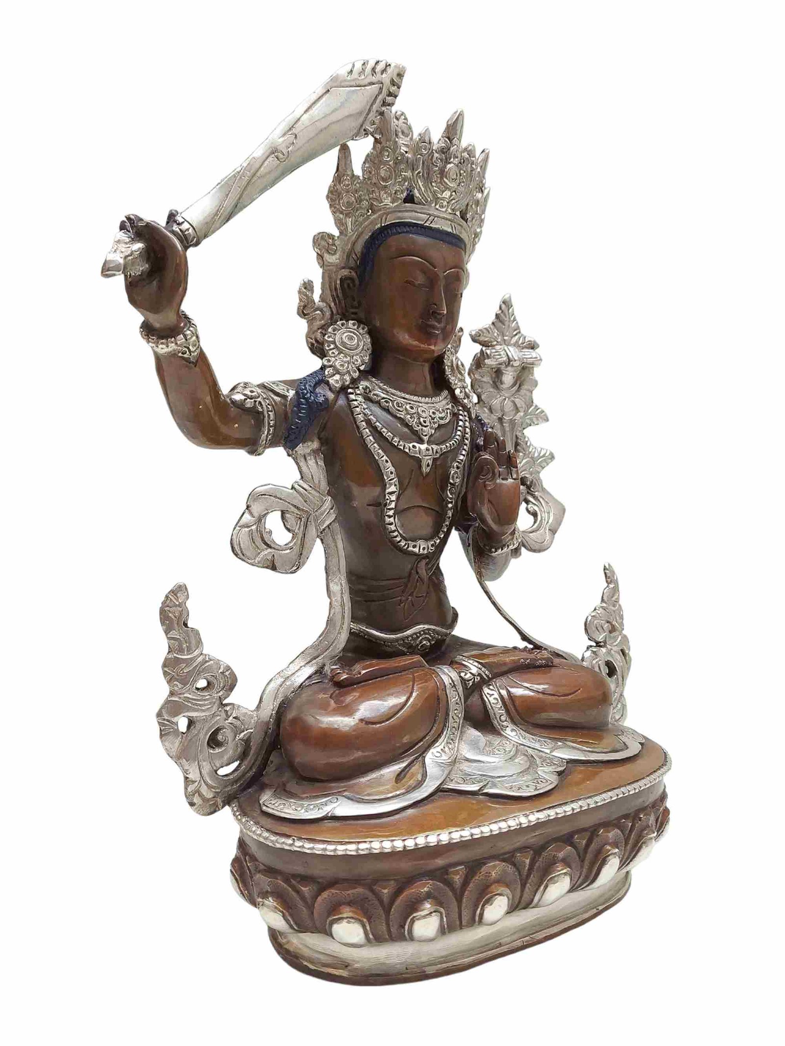 Buddhist Statue of Manjushri, Silver and Chocolate Oxidized , Wisdom Buddha, cutting through ignorance with the sword of insight