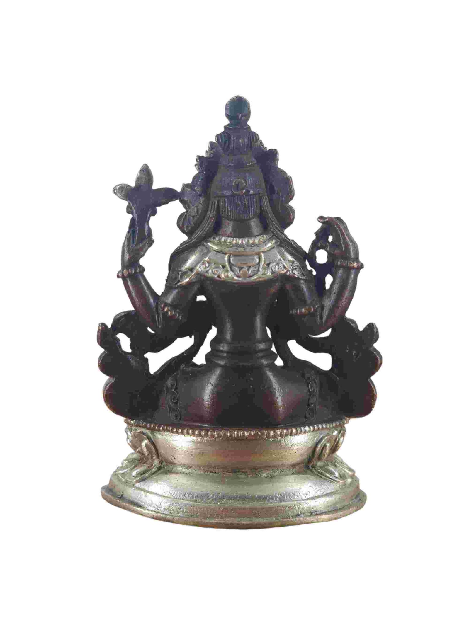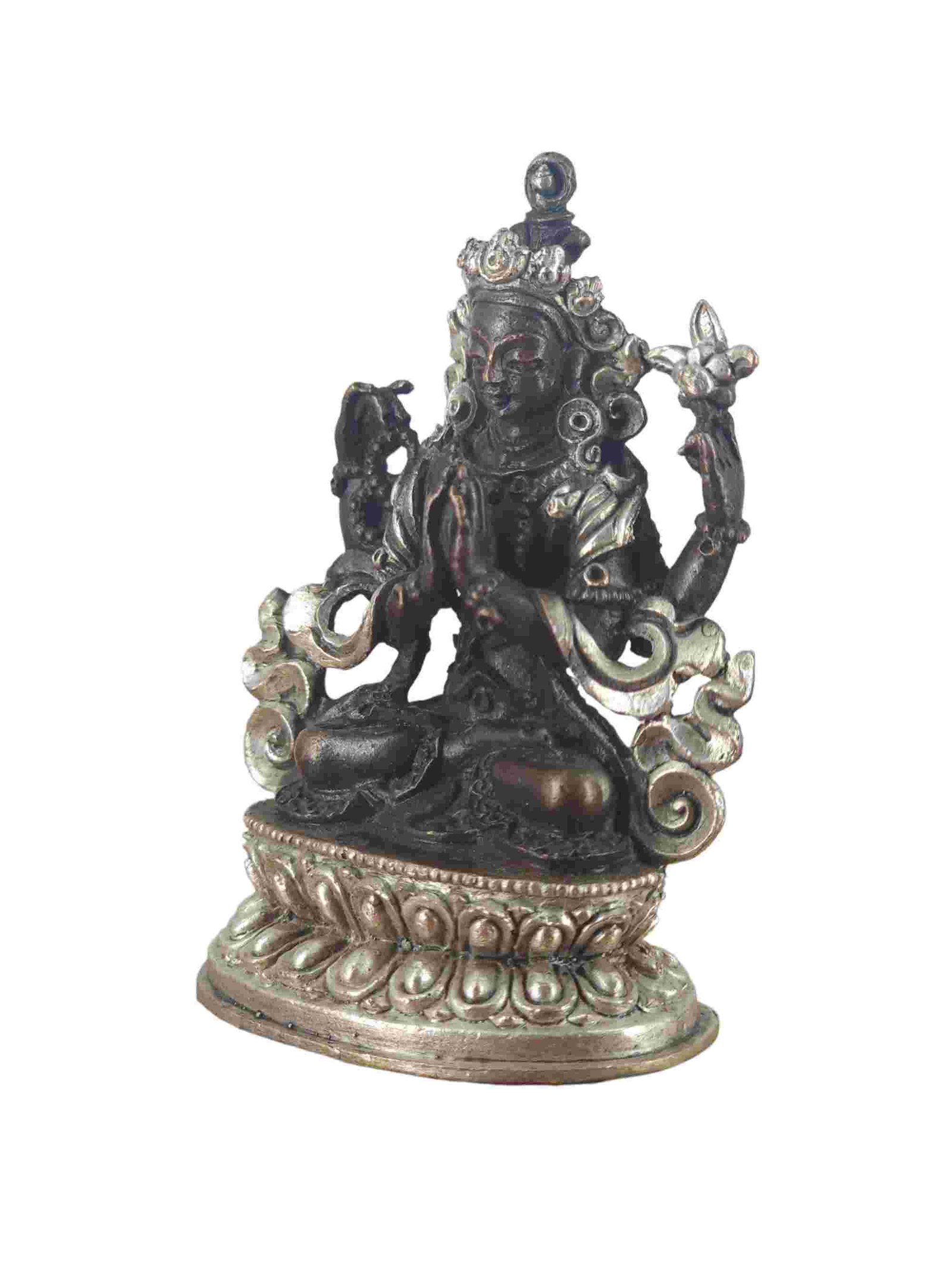 Buddhist Miniature Statue of Chenrezig, Chocolate Oxidized , Bodhisattva of Compassion, Protector of All Beings