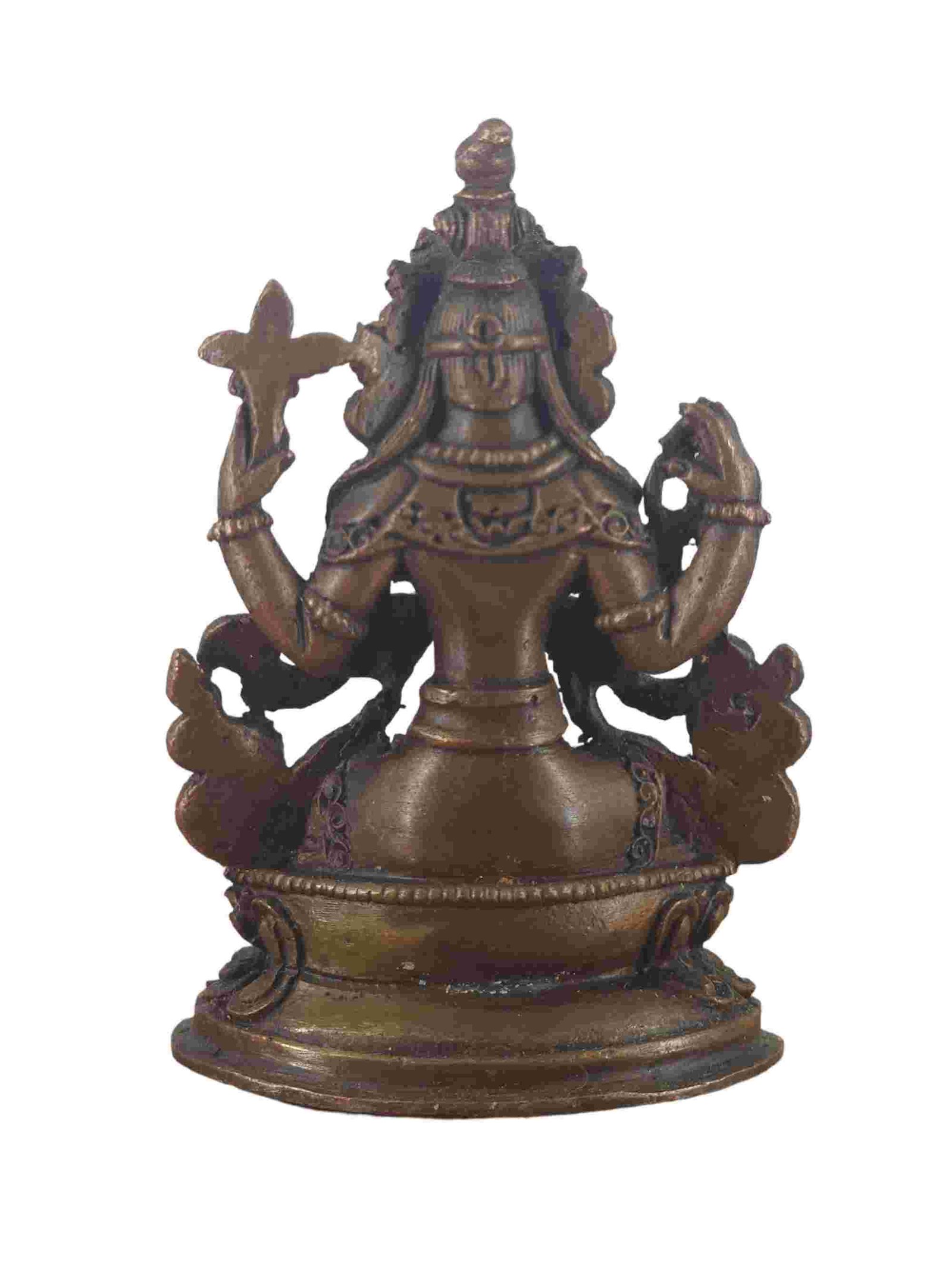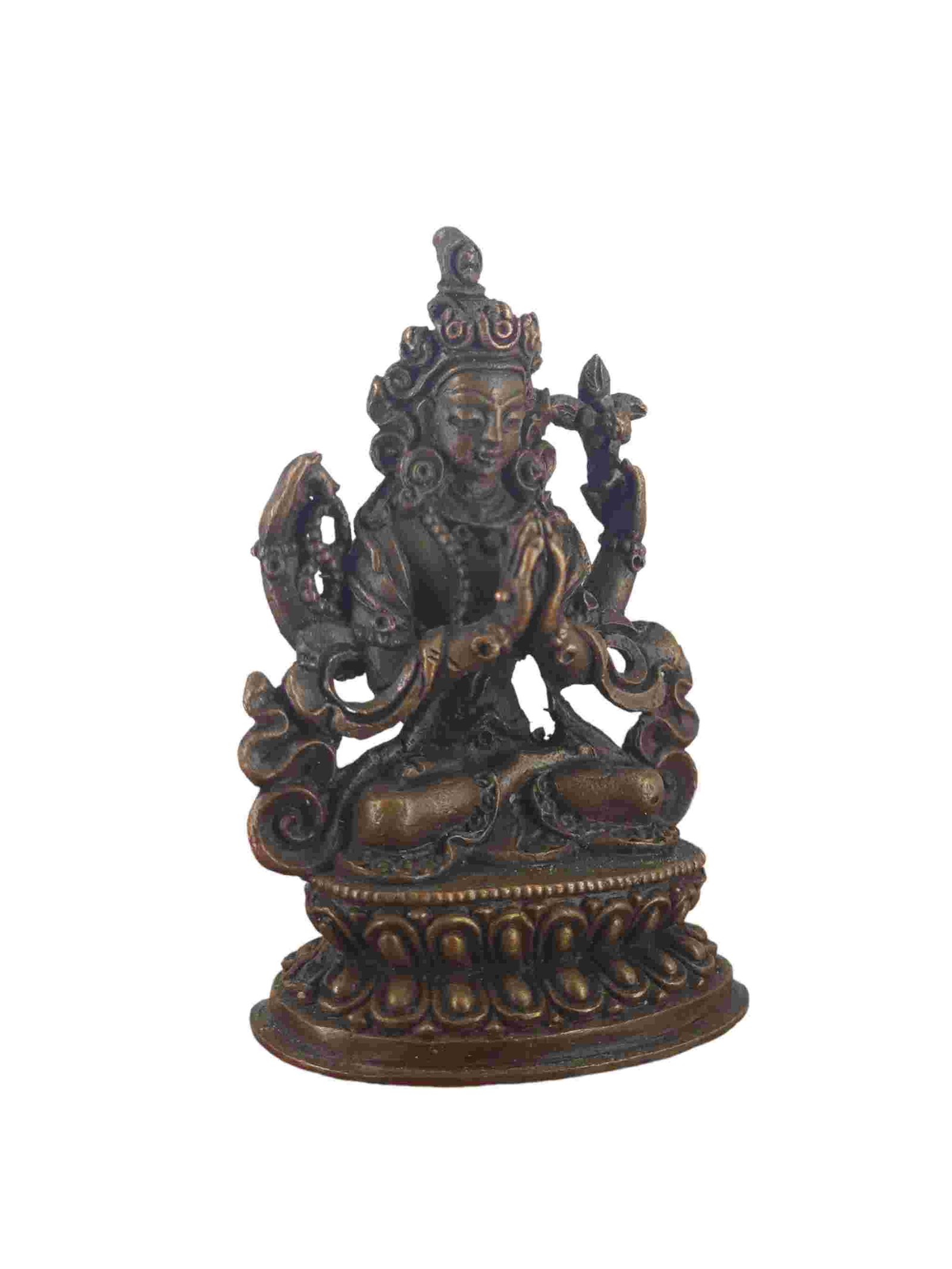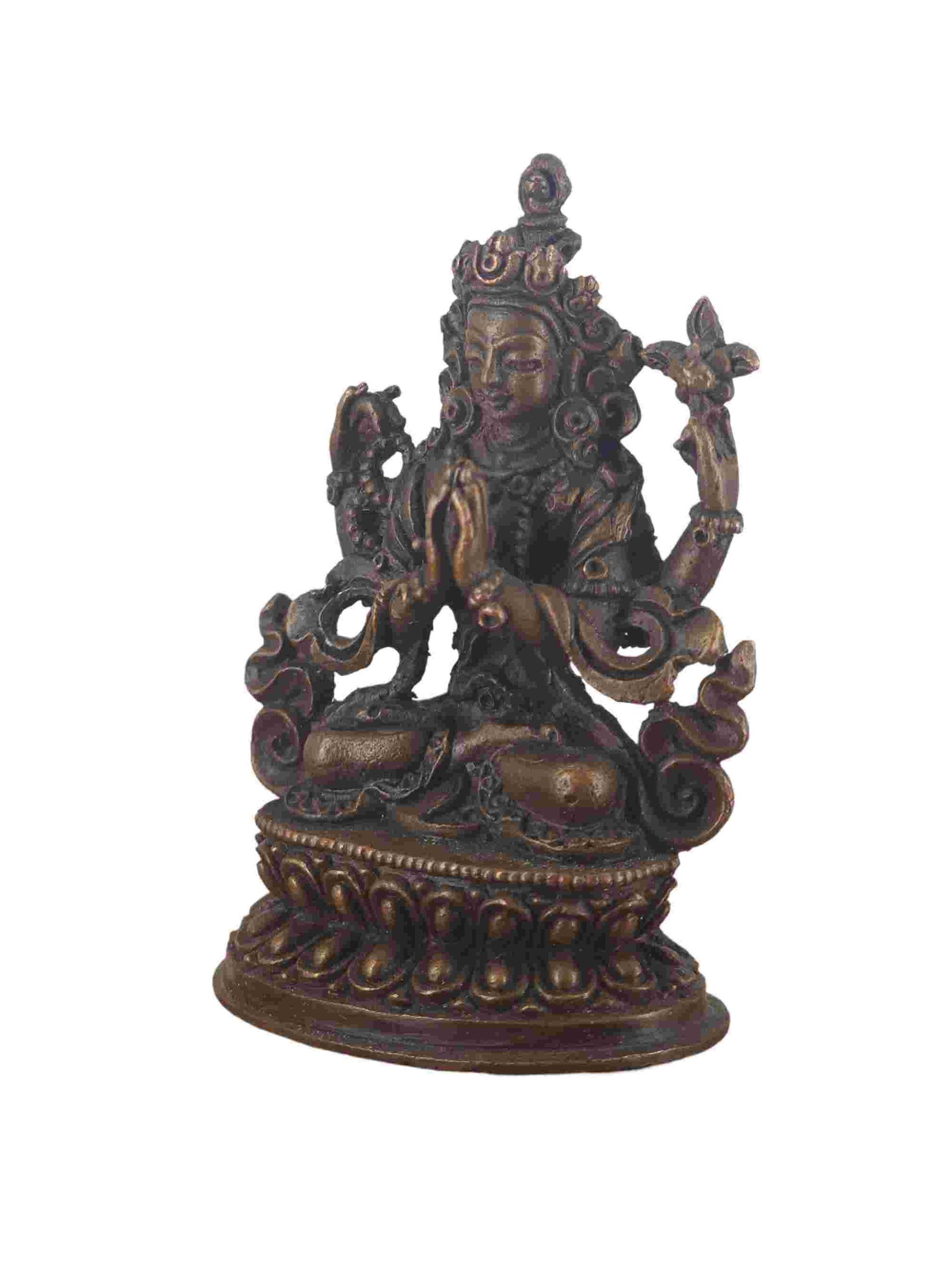 Buddhist Miniature Statue of Chenrezig, Chocolate Oxidized , Bodhisattva of Compassion, Protector of All Beings