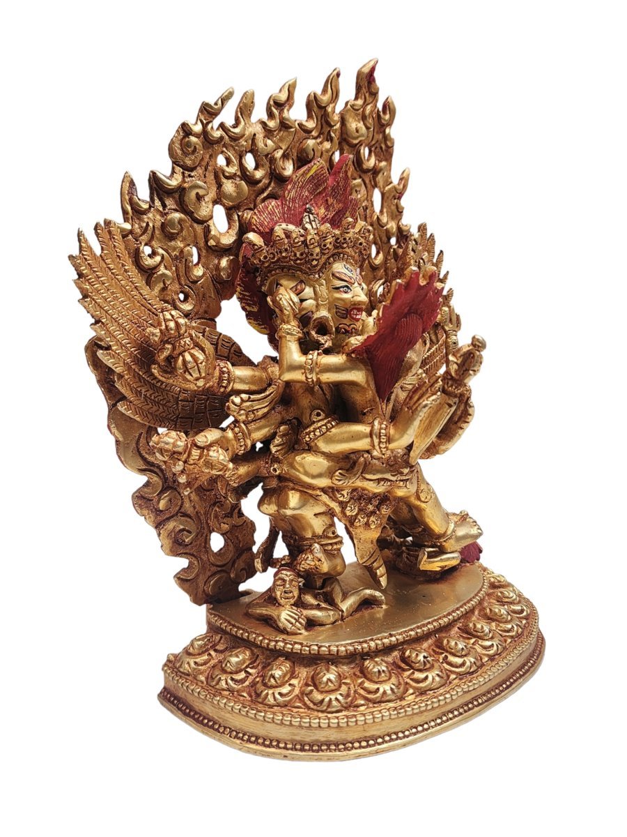 Buddhist Statue of Vajrakilaya - Dorje Phurba, with Full Gold Plated and Painted Face , Fierce deity of transformation, destroying obstacles and negativity