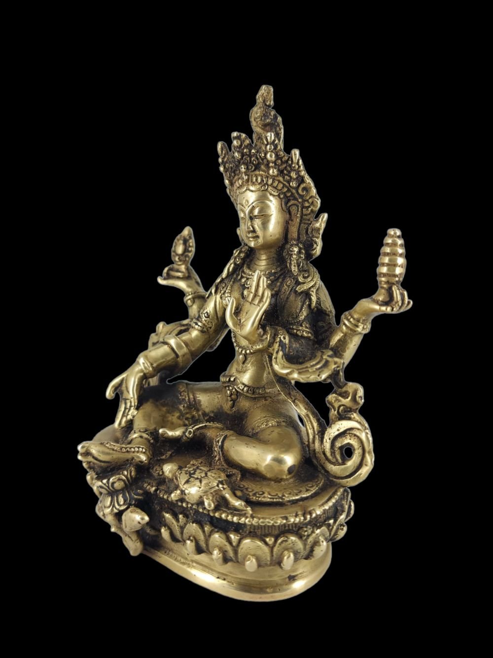 This Lakshmi product features a stunning Bronze patina finish. Our store takes pride in offering this exclusive patina, which involves a meticulous process utilizing organic materials such as butter and vegetable color. The aim is to recreate the appearance of an aged bronze statue, evoking a sense of timeless elegance.