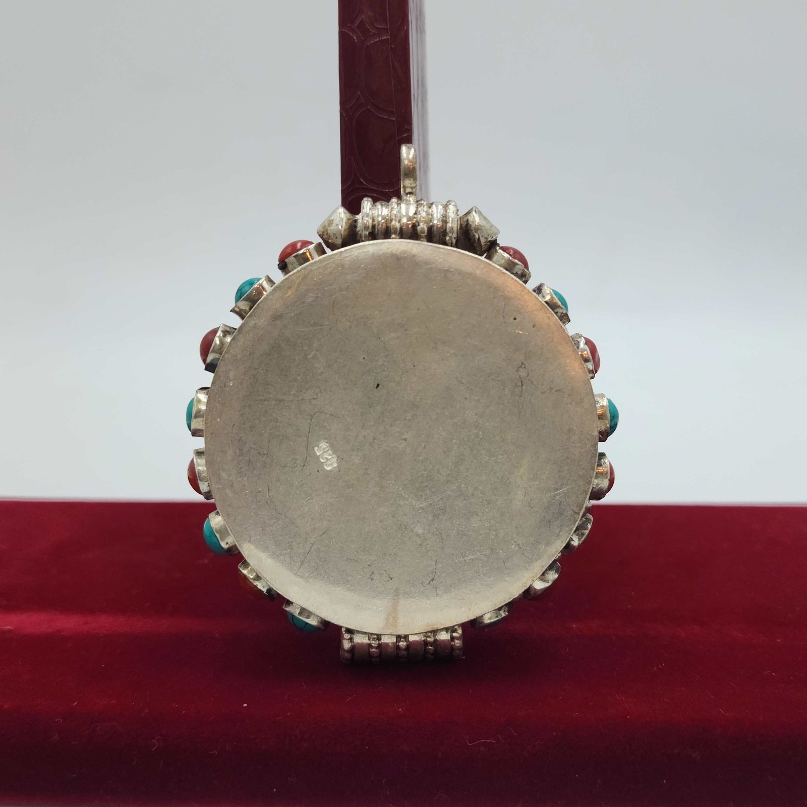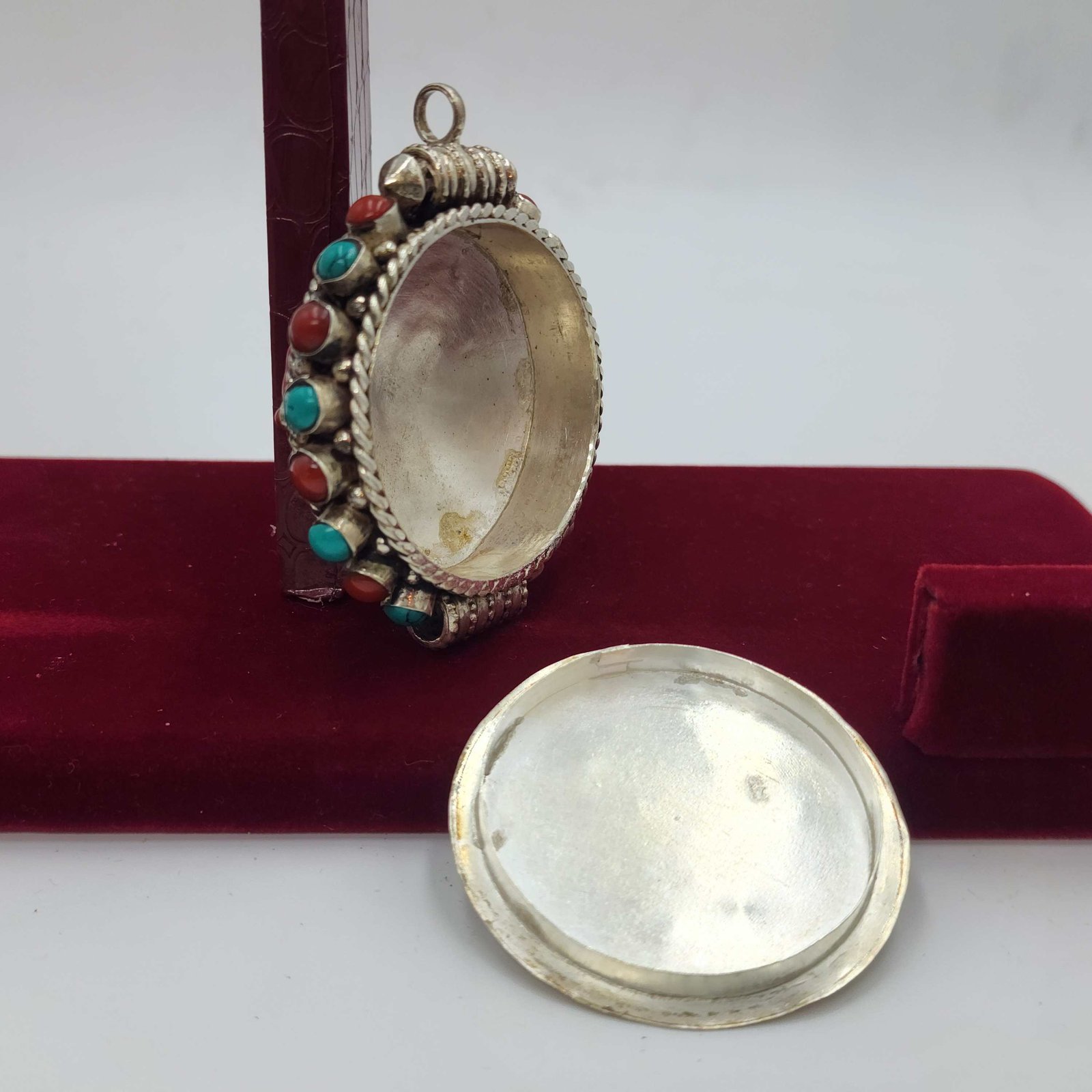 Sterlin Silver Tibetan Ghau Box with Flower Design, Stone Setting