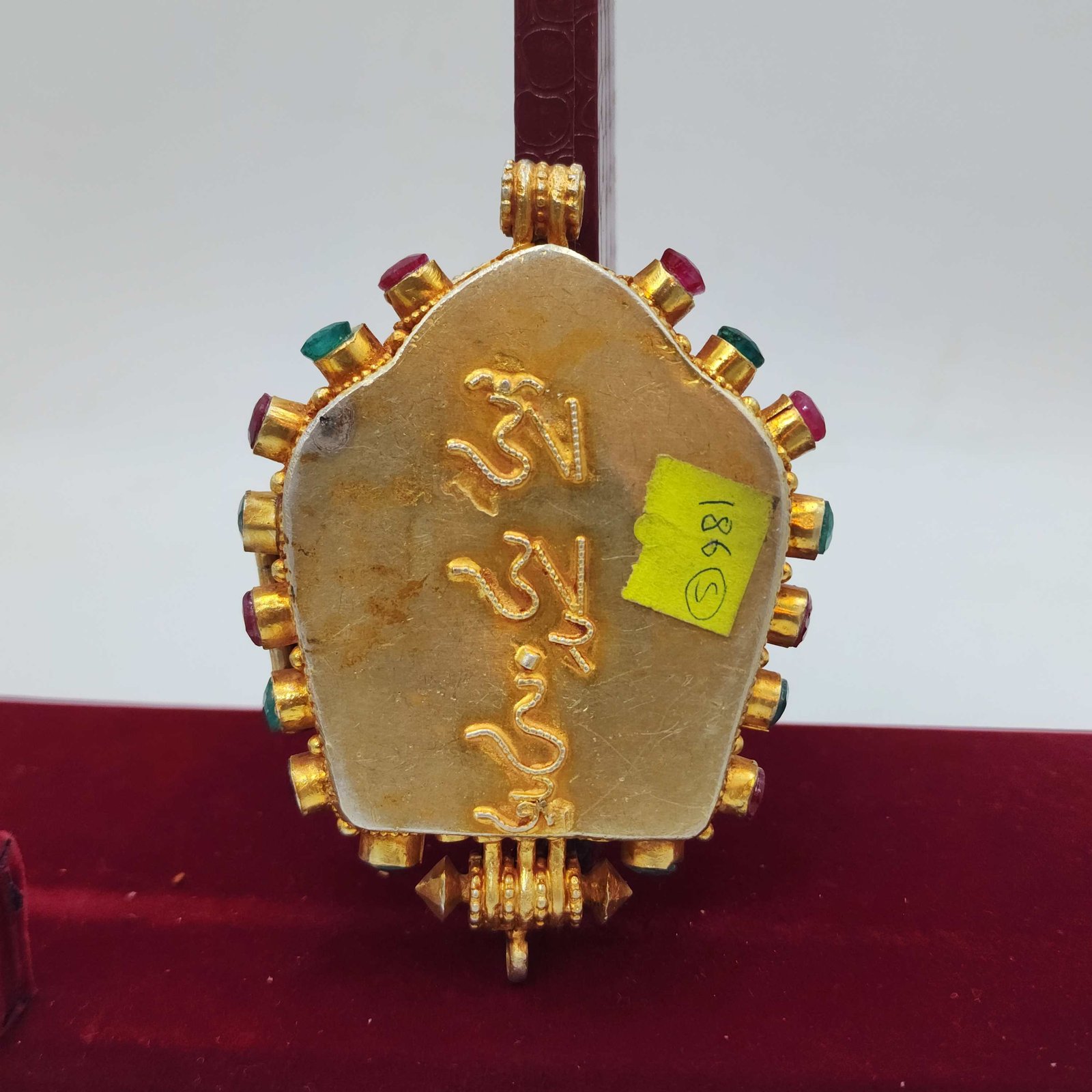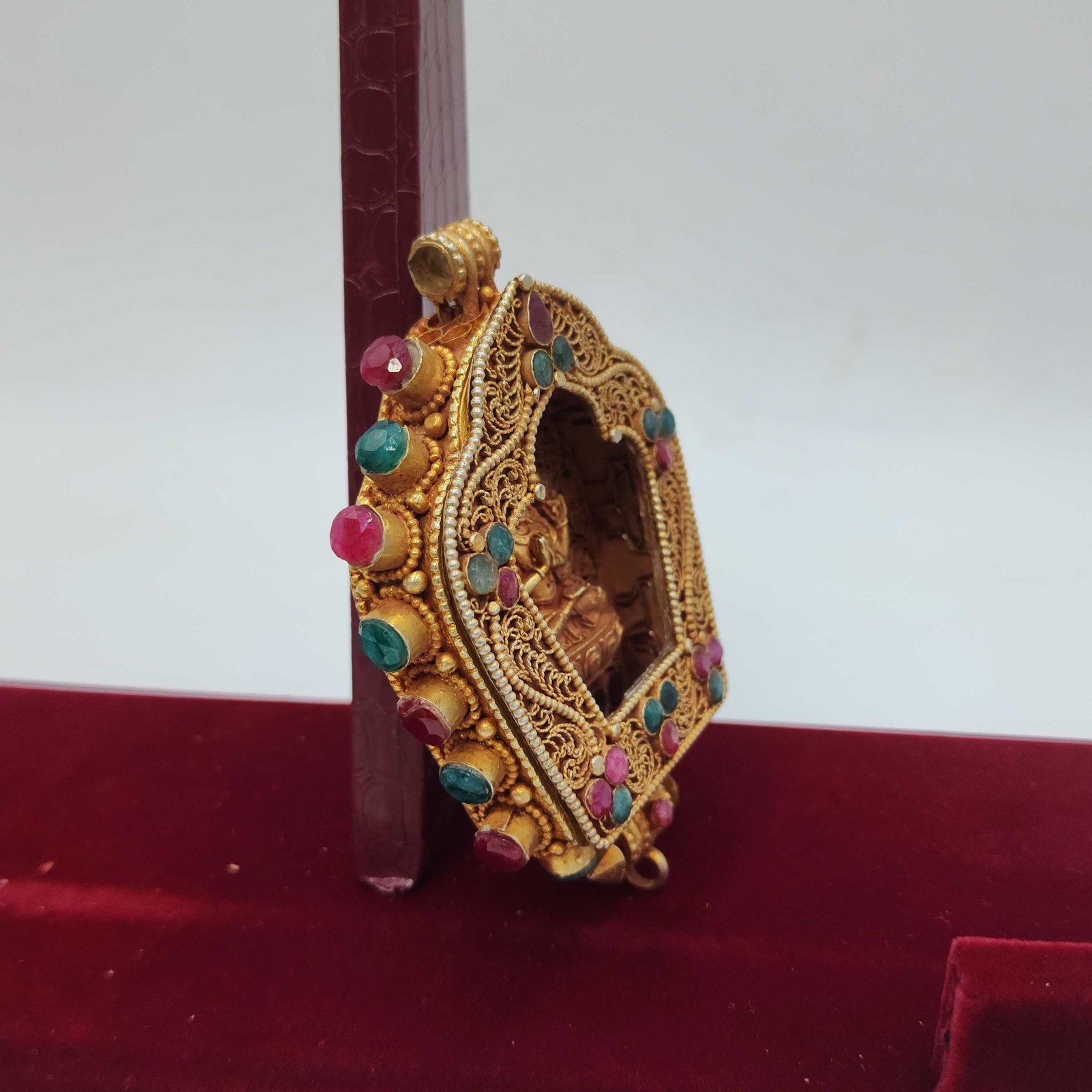 Sterlin Silver Tibetan Ghau Box with Chengrezig, Gold Plated, Stone Setting
