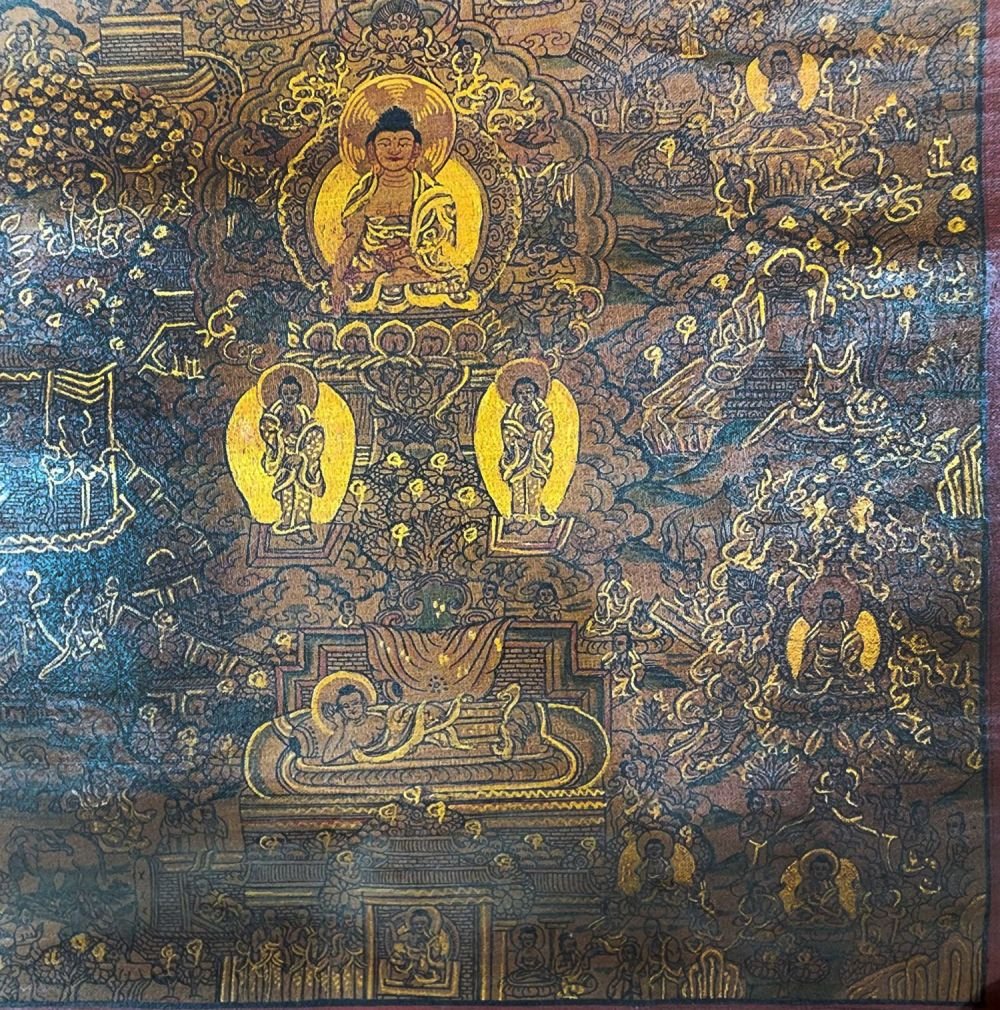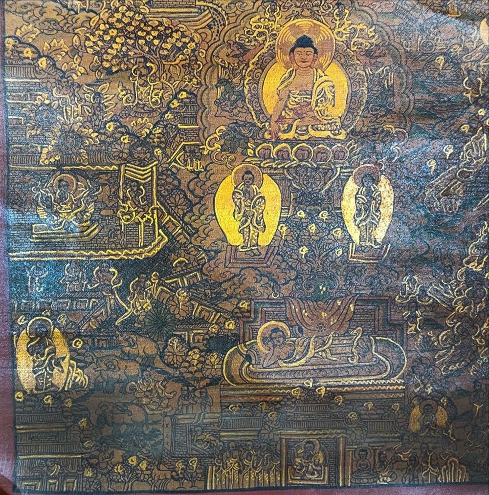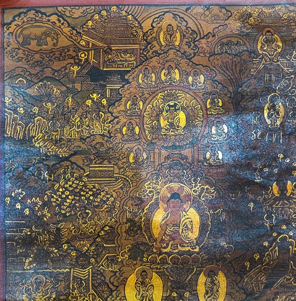 Buddhist Tibetan Thangka of Buddha Life Story, Hand Painted, Antique |