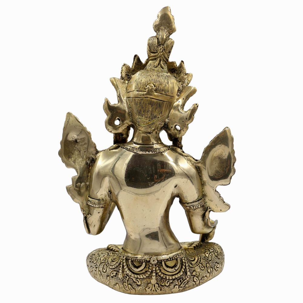 This White Tara product features a stunning Bronze patina finish. Our store takes pride in offering this exclusive patina, which involves a meticulous process utilizing organic materials such as butter and vegetable color. The aim is to recreate the appearance of an aged bronze statue, evoking a sense of timeless elegance.