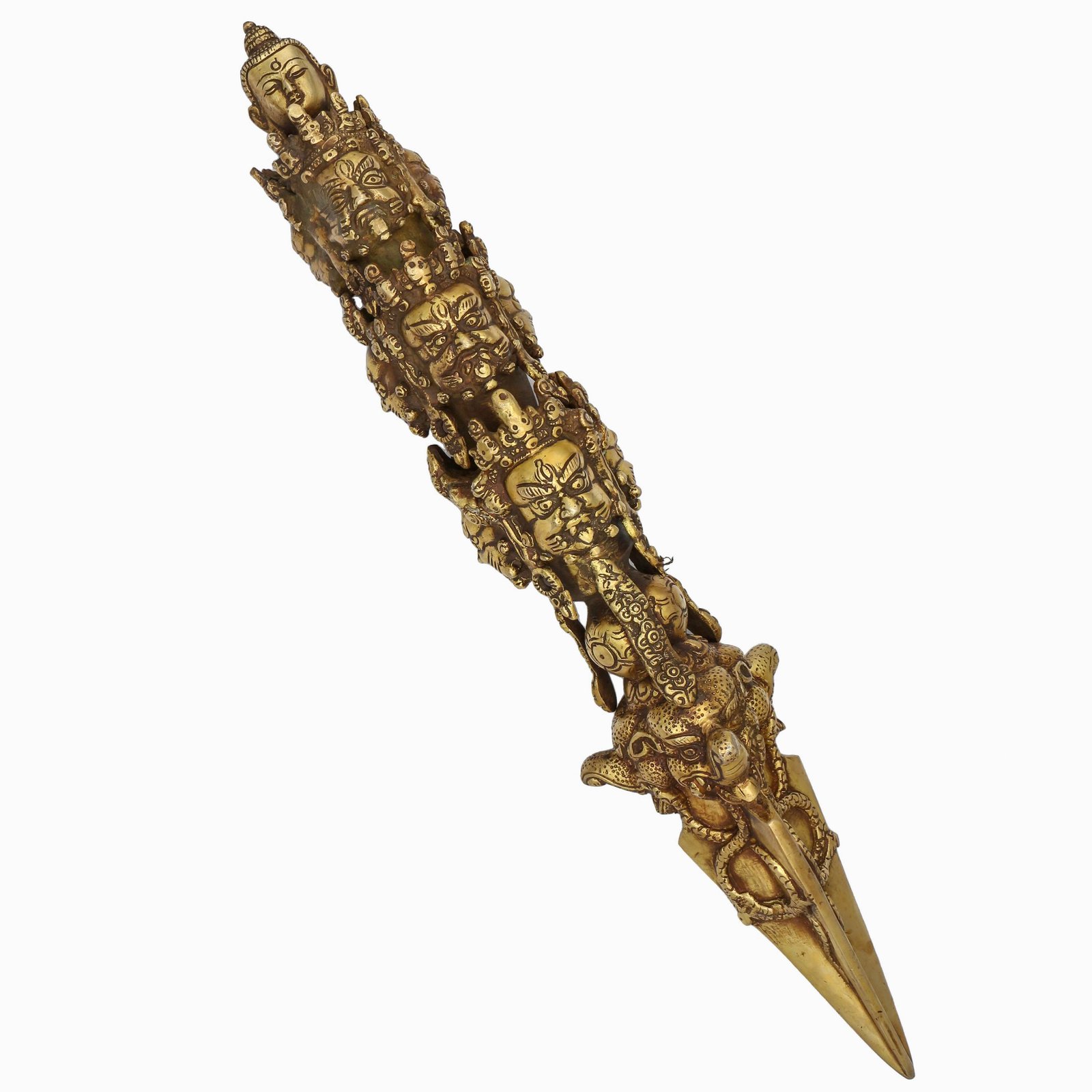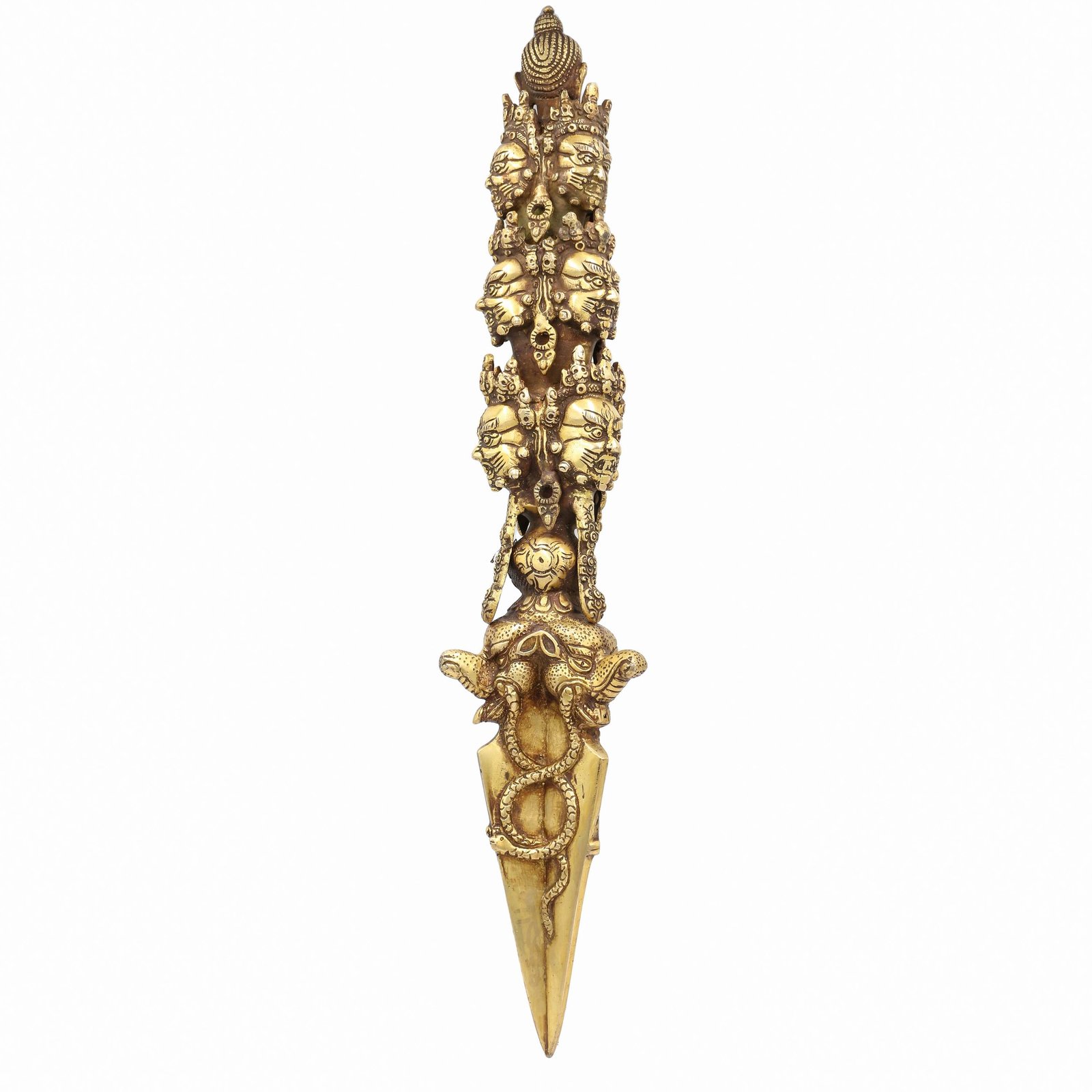 Buddhist Metal Phurba, 10 Head Phruba, Vajrakilaya - Dorje Phurba , A ritual dagger used to cut through obstacles and negative energies