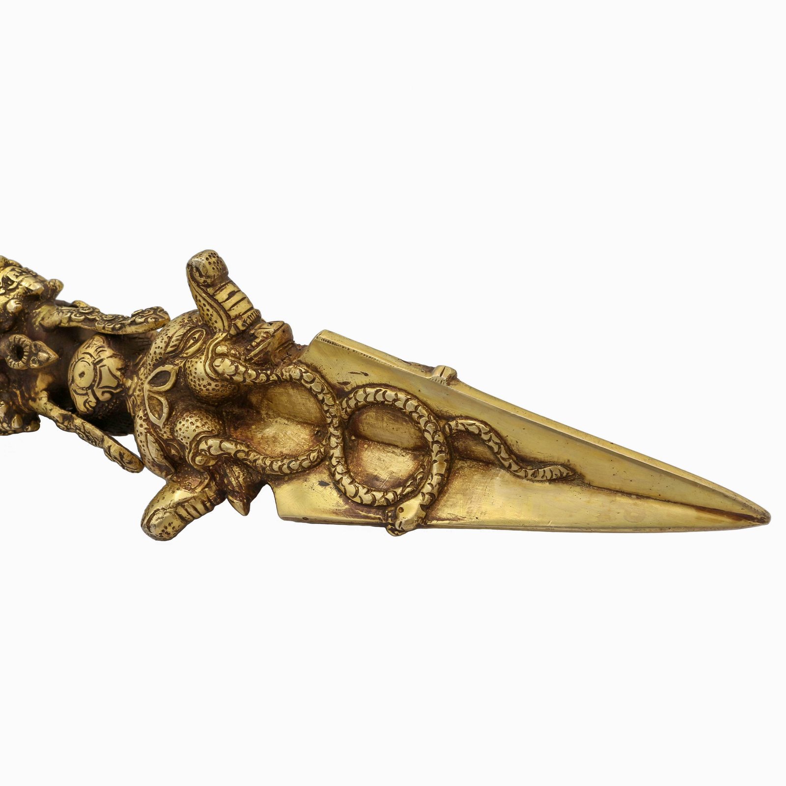 The Phurba has no patina finishing over it. presenting a unique opportunity for personalization. As it is, the statue can be displayed in its raw form, showcasing its inherent beauty and craftsmanship. Alternatively, you have the option to further enhance the statue's appearance by applying various finishes such as gold plating, oxidation, or silver plating. Over time, if left untreated, the statue will naturally develop a patina. This is a gradual process where the surface undergoes subtle changes, resulting in a charming and distinct aged appearance. The patina adds character and depth to the statue, telling a story of its journey and the passage of time. Read More