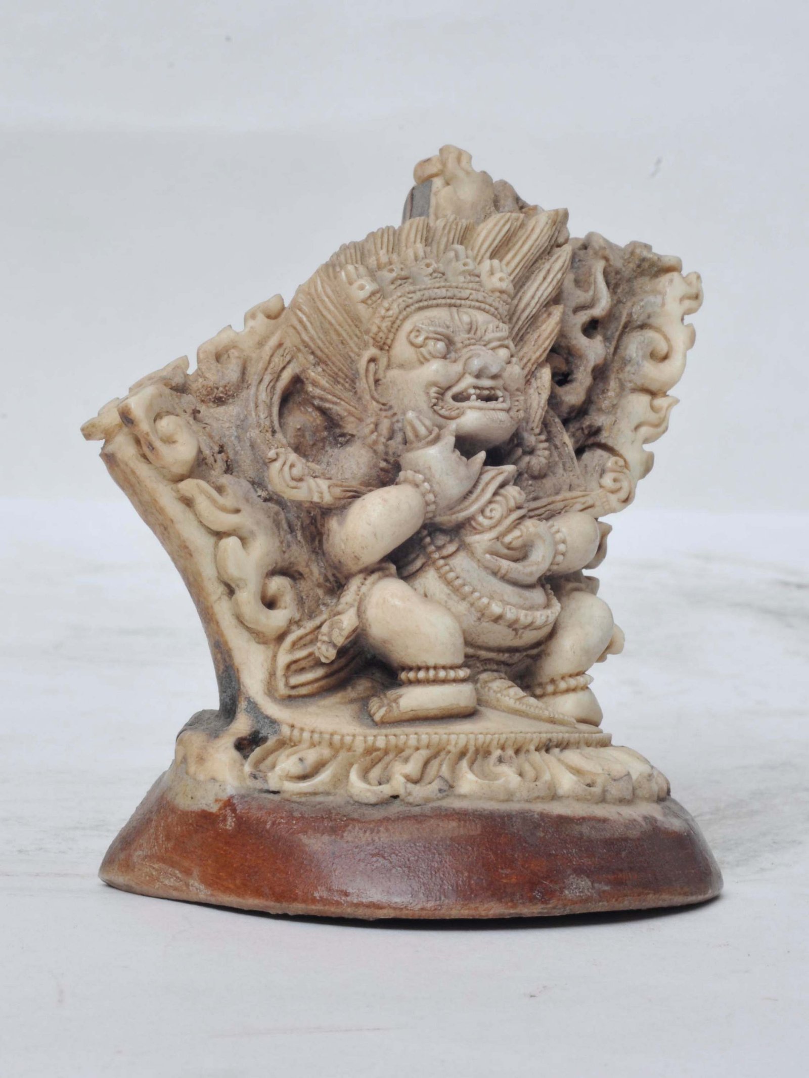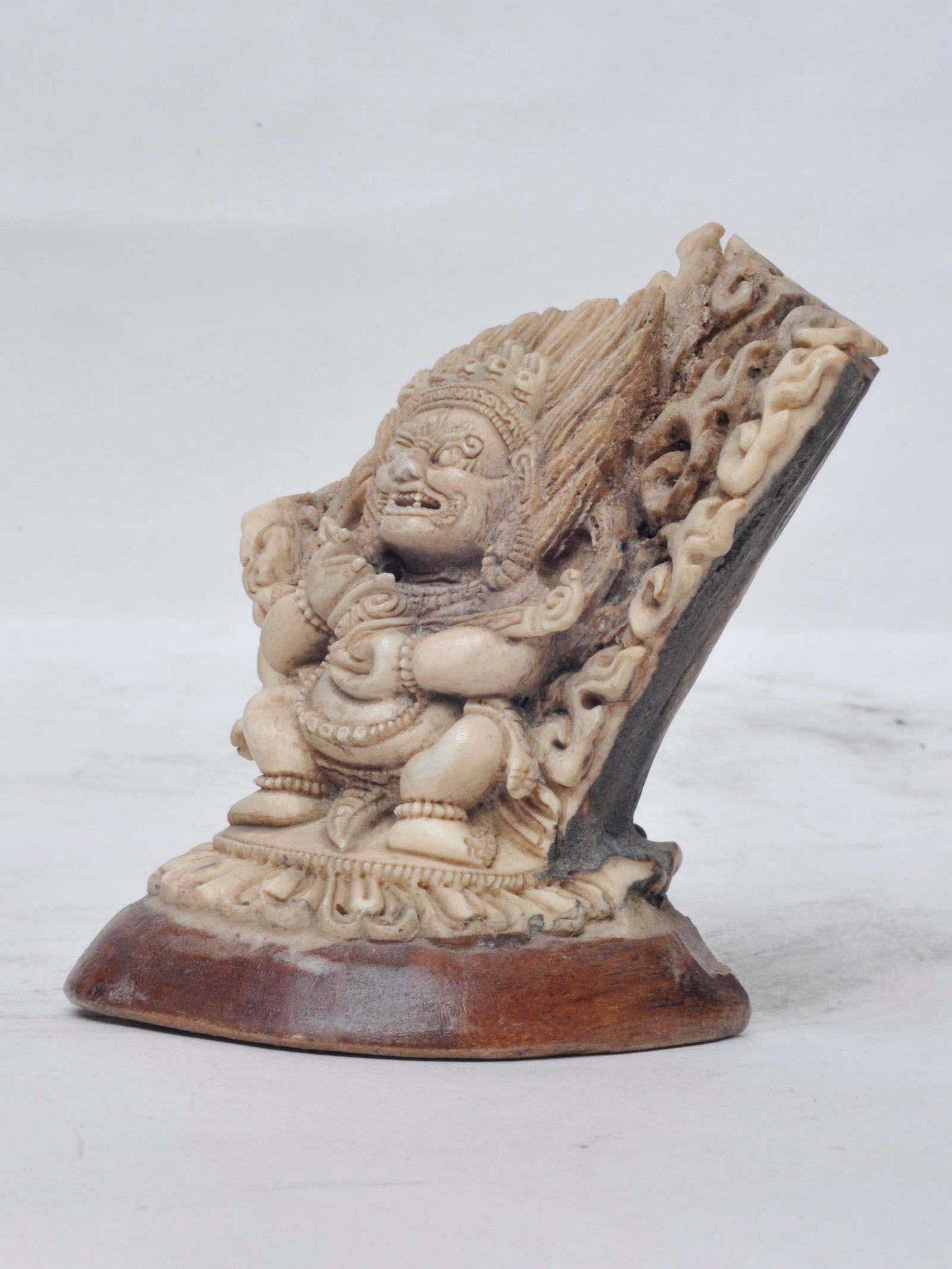 Tibetan Hand Carved Animal Bone Stamp Tibetan Seal with Mahakala 2 Arms Carved , The Lord of the Tent, fierce protector of sacred spaces and teachings