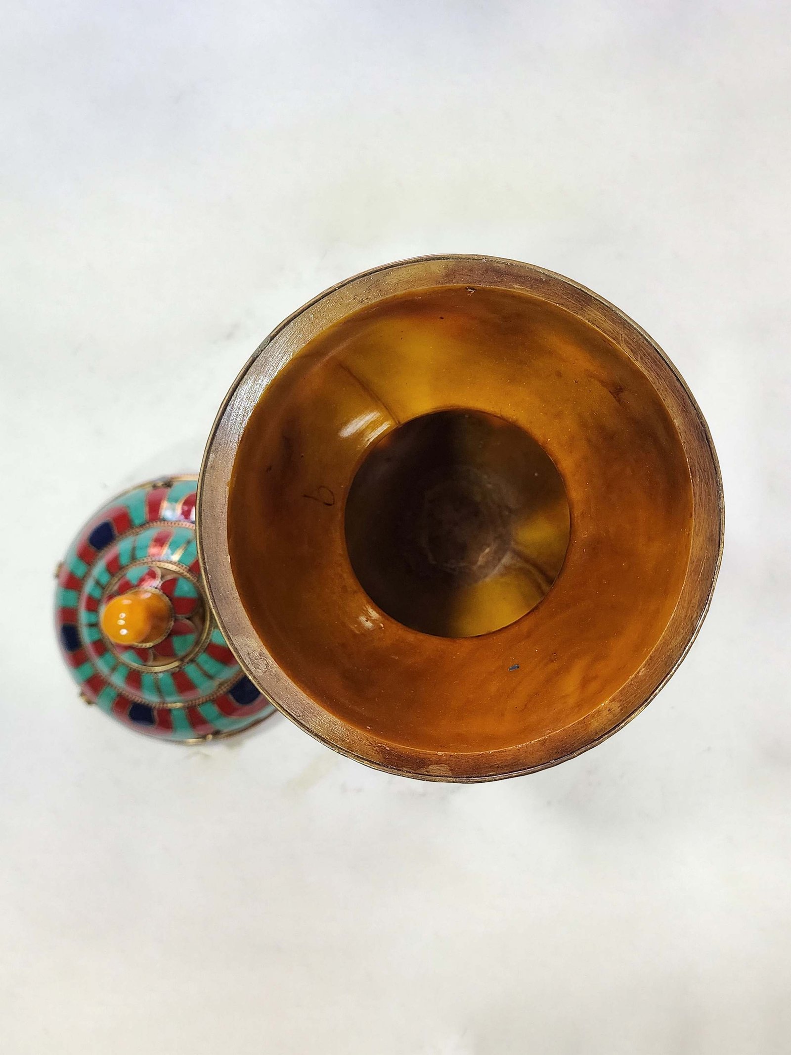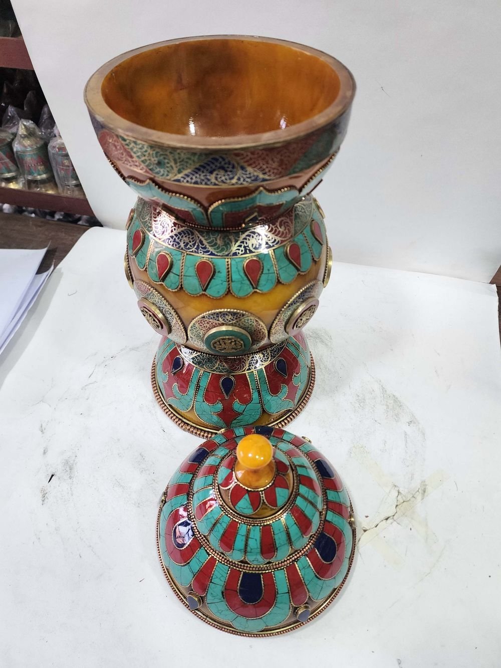 Tibetan offering Vessel -Hlyosar Stupa Box , with Stone Setting, Imitation Amber |