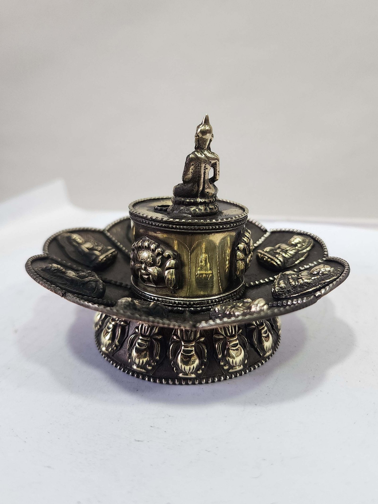Nepali metal incense holders come in various shapes and sizes. Some common designs include cylindrical containers with lids, lotus-shaped holders, or intricate carved boxes. These holders are specifically designed to hold incense sticks, keeping them secure and providing a stable base for burning.