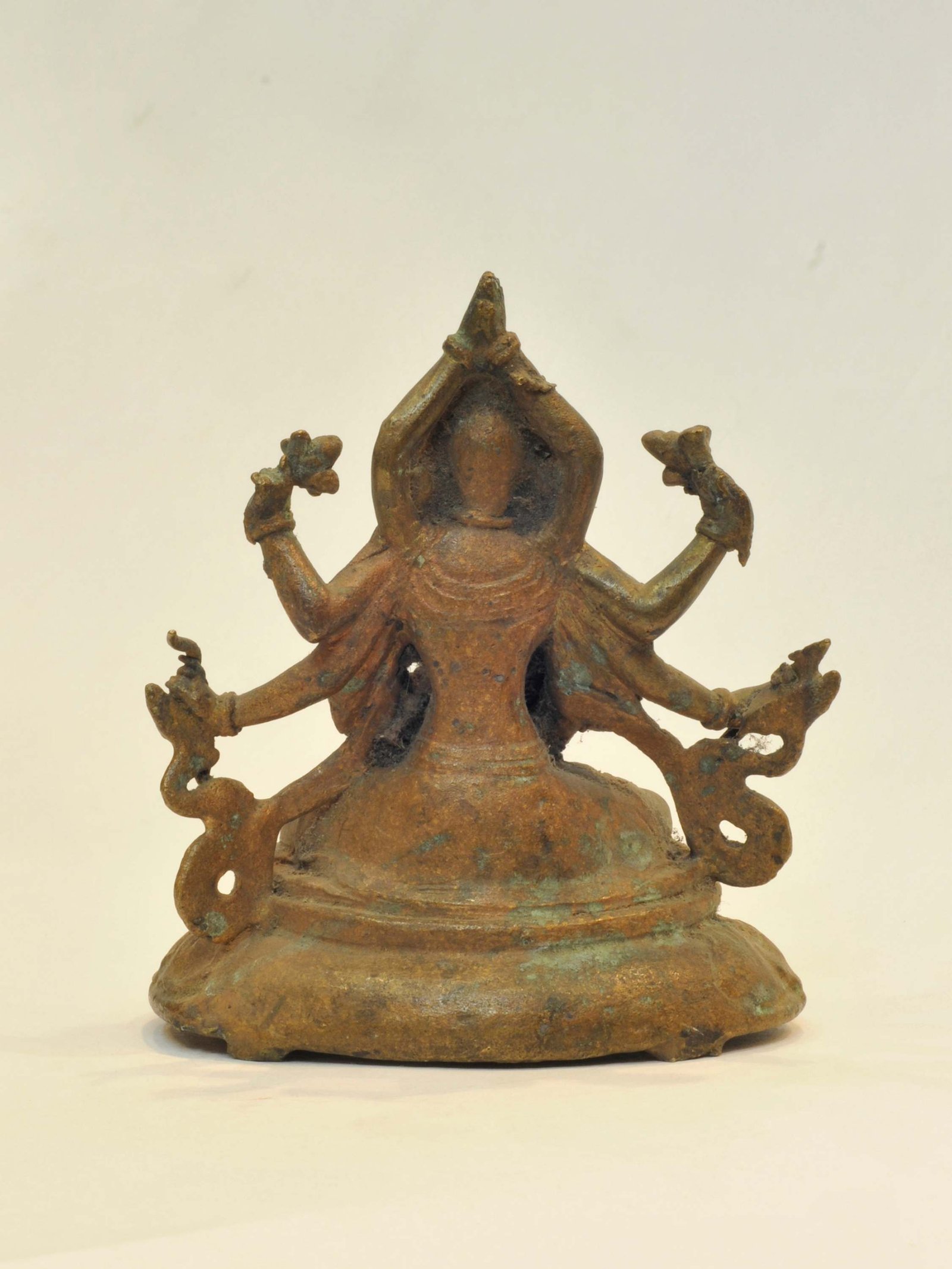 This is an antique patina-finished Namasangiti. This is not an antique statue. It is just an antique patina finish. This Namasangiti is a testament to the artisan's mastery of the art of aging. Its antique patina has been meticulously crafted to give the appearance of an aged statue, showcasing the artist's unique techniques and skills. Through undisclosed processes and careful aging treatments, the Namasangiti undergoes a transformation that captures the essence of time and history. Read More