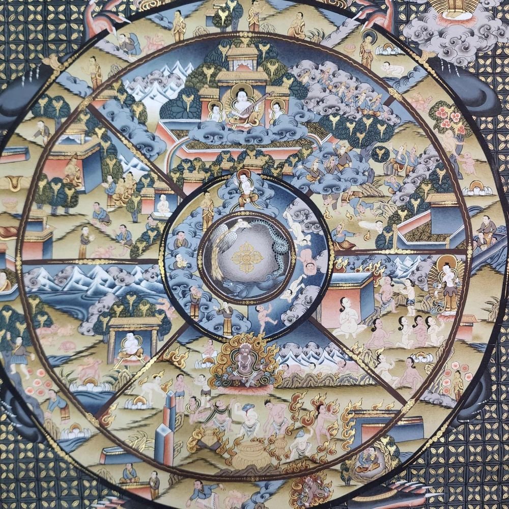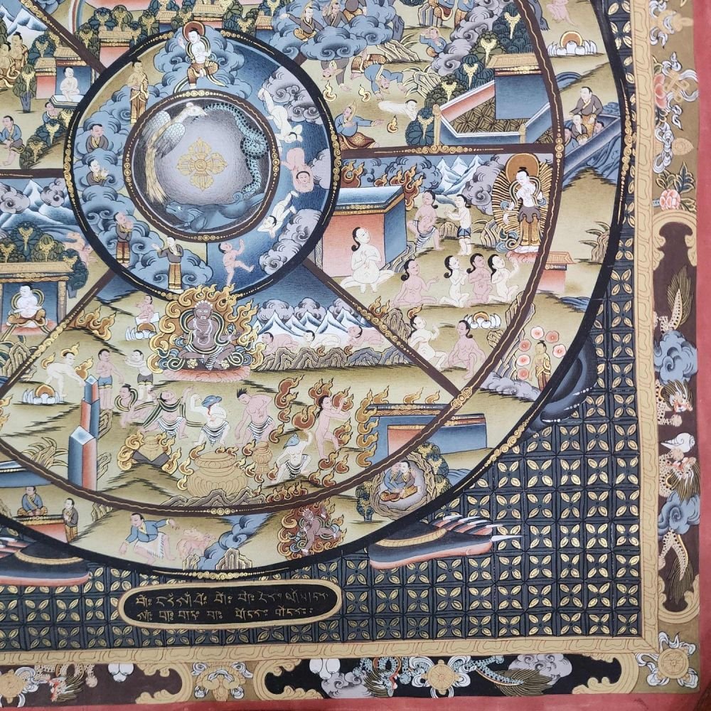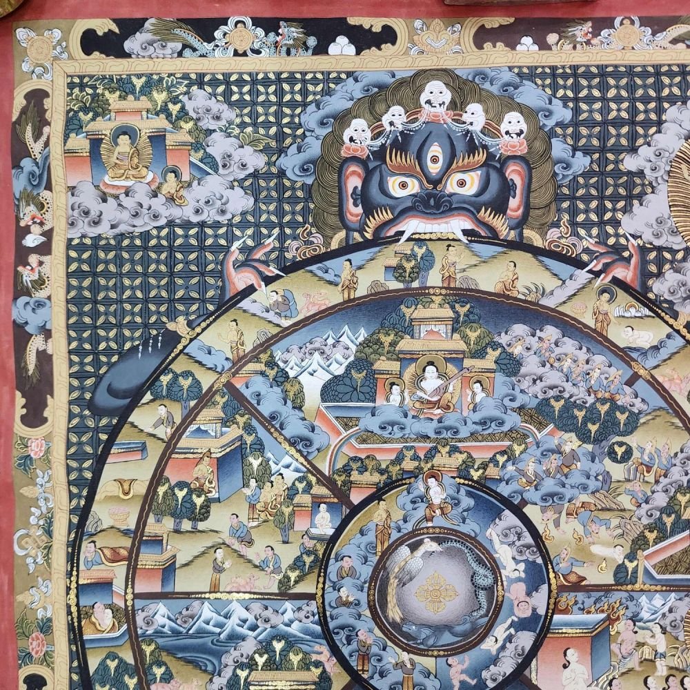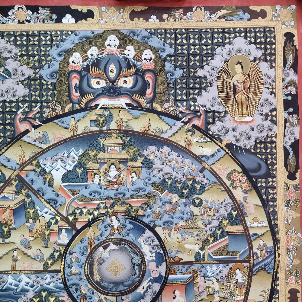 Art From Bhaktapur, Buddhist Handmade Thangka of Wheel of Life, Hand Painted, Antique, Real Gold