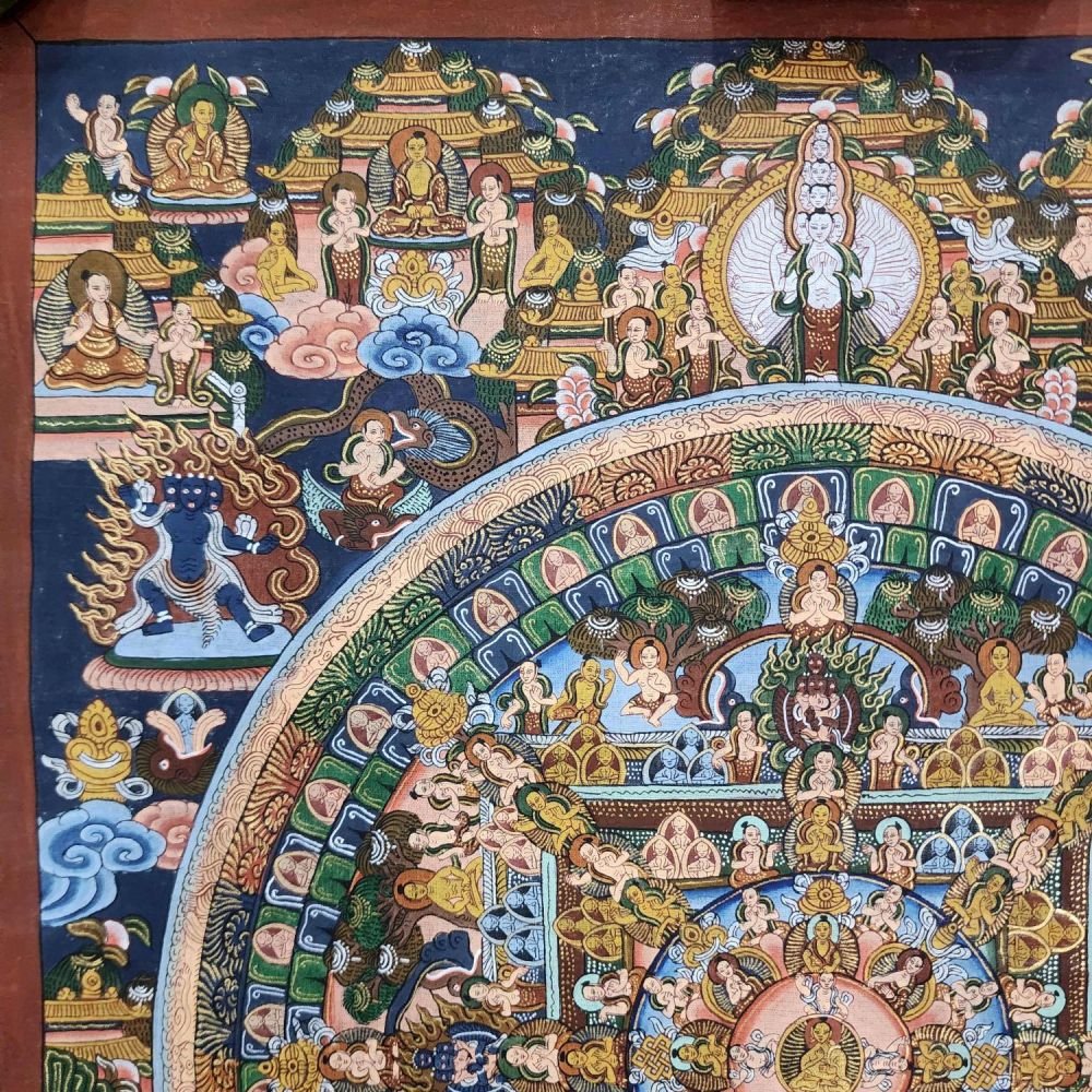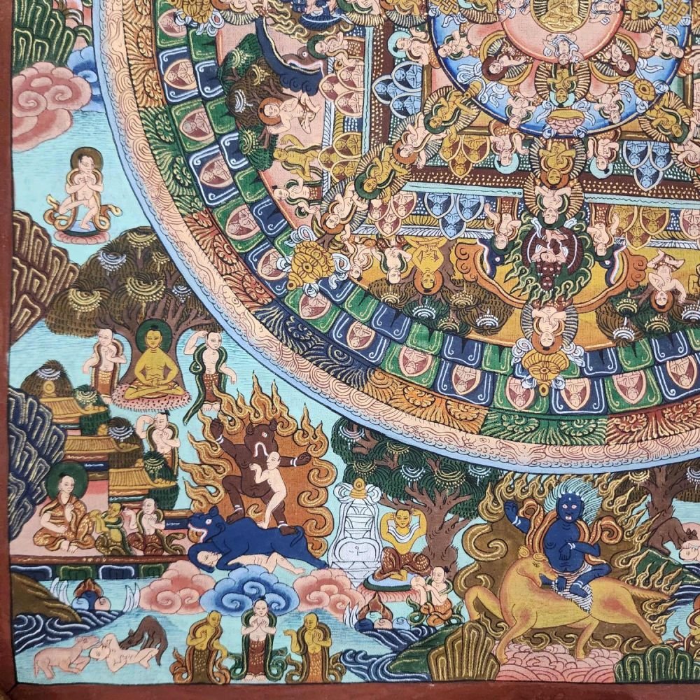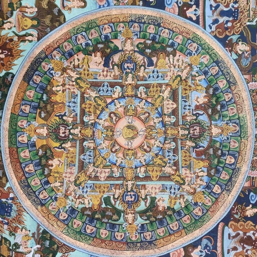 Mandala Thangka painting is a revered form of sacred art in Buddhism, characterized by intricate and vibrant depictions on cotton or silk. These paintings often feature a central deity or Buddha figure surrounded by meticulously crafted symmetrical patterns, geometric designs, and symbolic elements. Mandala Thangkas serve as visual aids for meditation and spiritual growth, guiding practitioners towards inner peace, harmony, and enlightenment. Through their precise brushwork and rich symbolism, these artworks invite viewers to contemplate the profound spiritual journey within themselves, fostering mindfulness, concentration, and a deeper connection with the universal truths of Buddhism. Read More