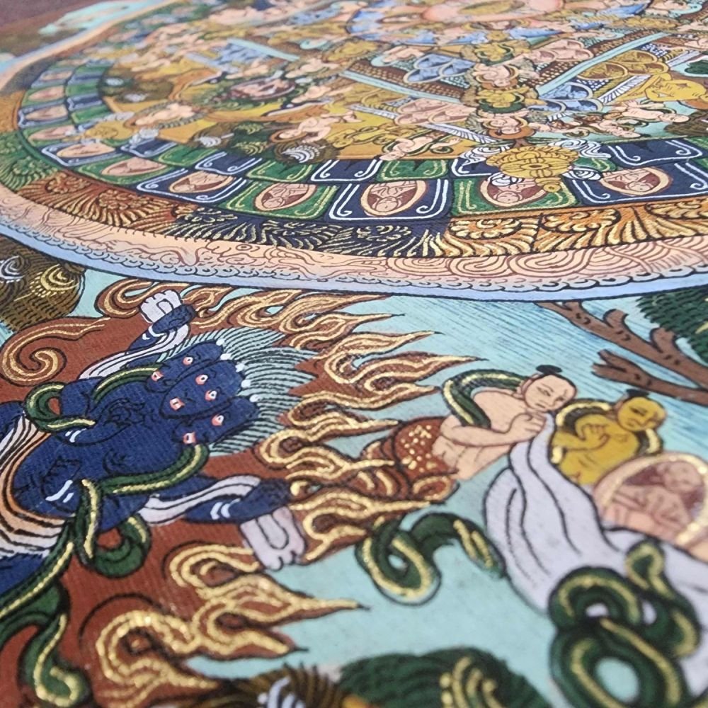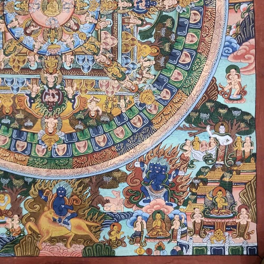Art From Bhaktapur, Buddhist Handmade Thangka of Mandala, Hand Painted, Antique, Real Gold |