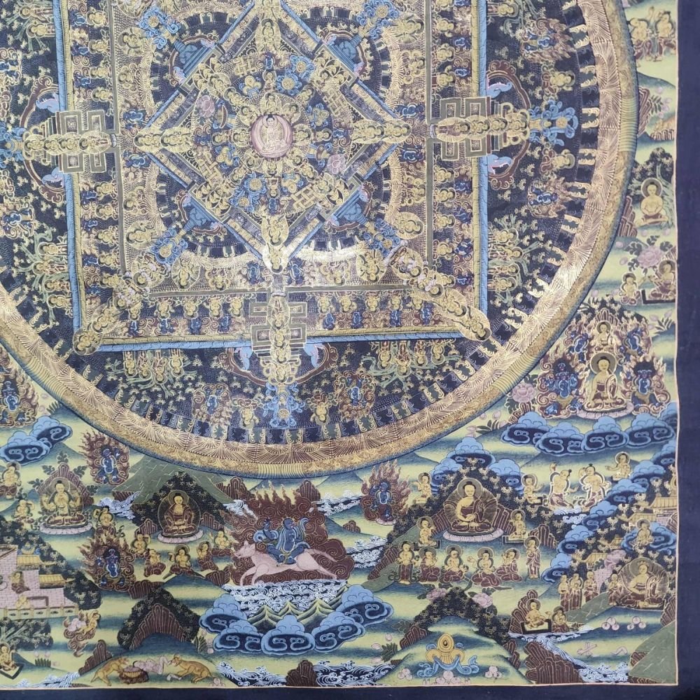 Mandala Thangka painting is a revered form of sacred art in Buddhism, characterized by intricate and vibrant depictions on cotton or silk. These paintings often feature a central deity or Buddha figure surrounded by meticulously crafted symmetrical patterns, geometric designs, and symbolic elements. Mandala Thangkas serve as visual aids for meditation and spiritual growth, guiding practitioners towards inner peace, harmony, and enlightenment. Through their precise brushwork and rich symbolism, these artworks invite viewers to contemplate the profound spiritual journey within themselves, fostering mindfulness, concentration, and a deeper connection with the universal truths of Buddhism. Read More