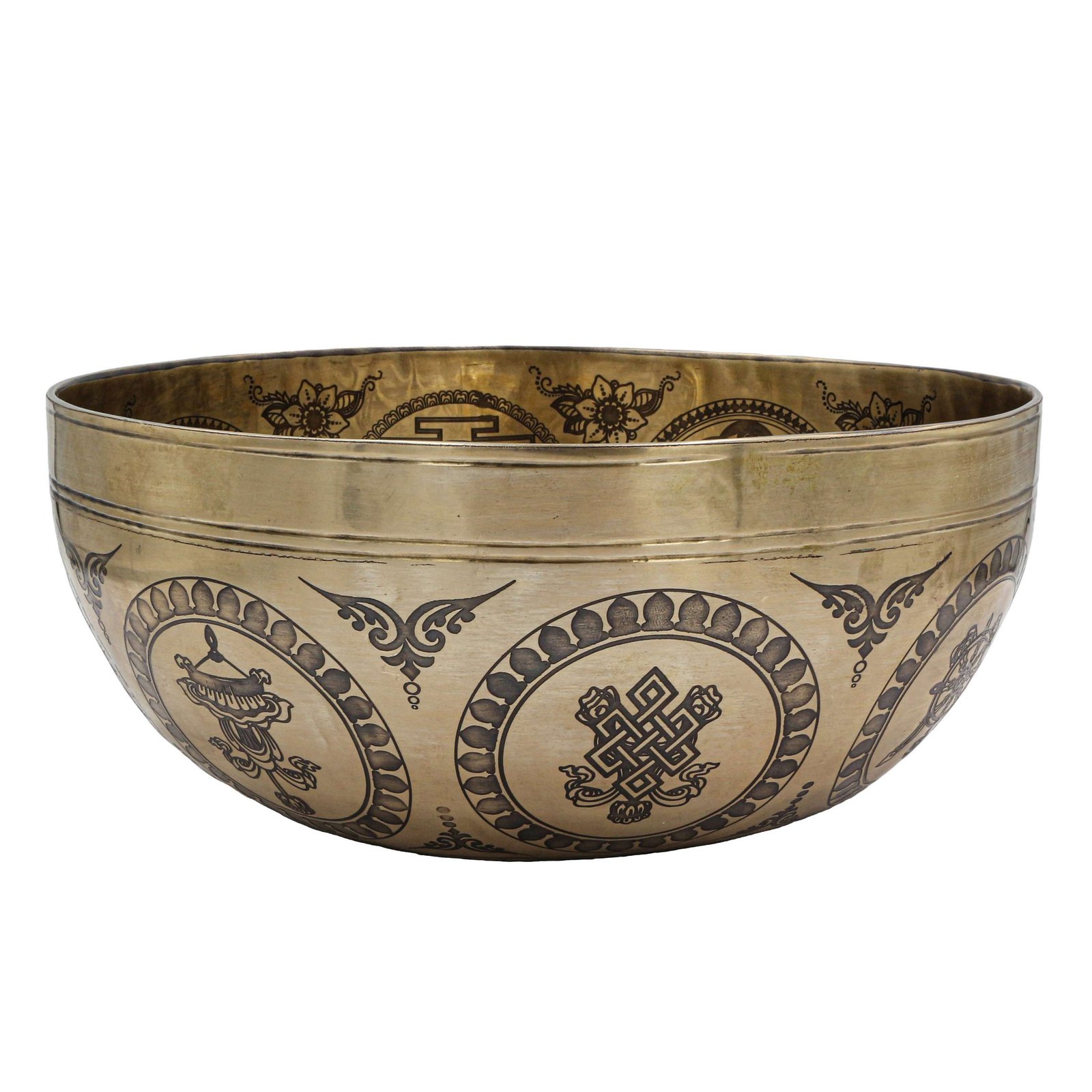 The finished bowl is then polished to a high shine and may be adorned with intricate designs and symbols that are significant in Buddhist or Hindu tradition. Read More