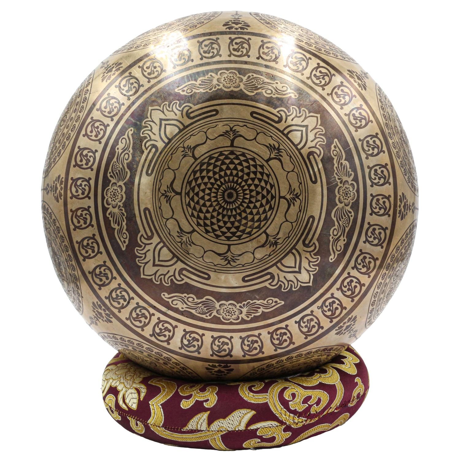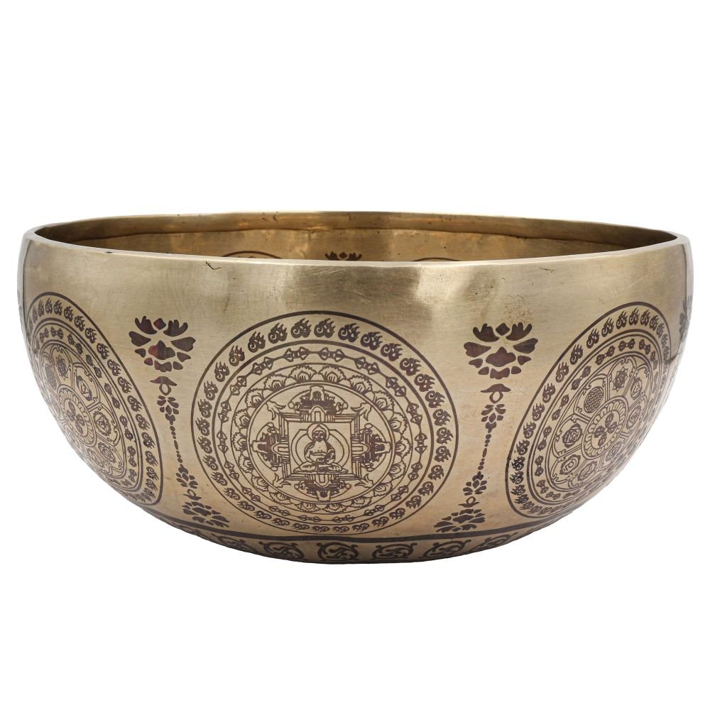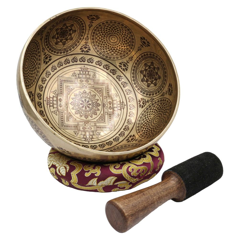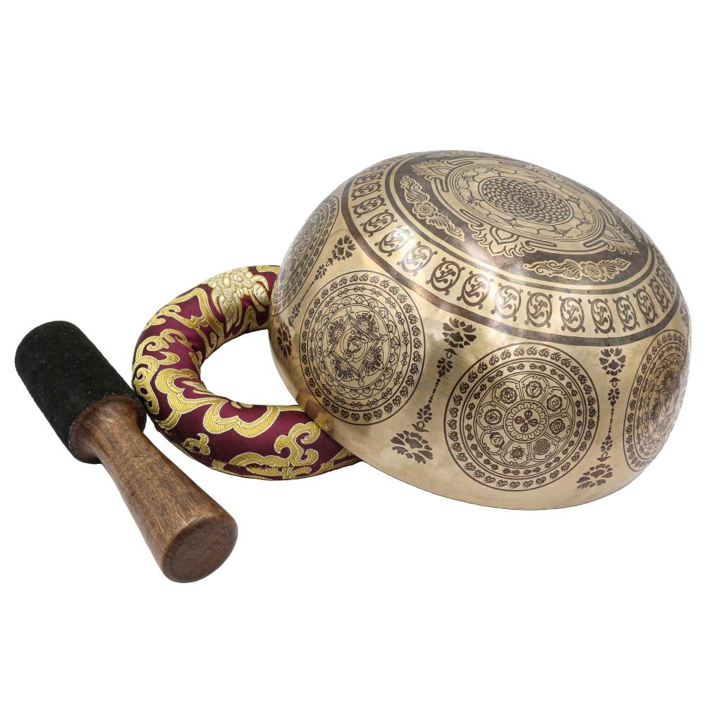 Buddhist Hand Beaten Jambati Singing Bowl, with Premium Etching Carving of Mandala Design, Select Accessories |