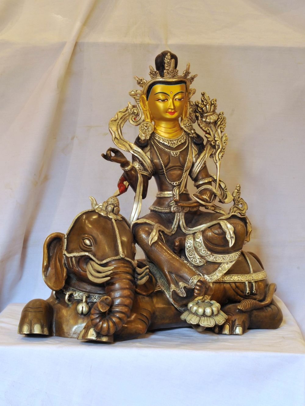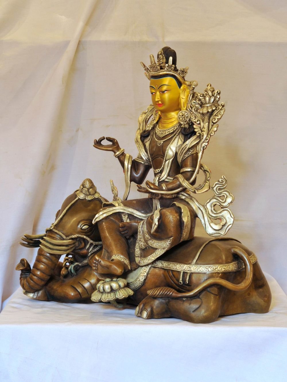 Buddhist Handmade Statue of Samantabhadra, Silver and Chocolate Oxidized, Face Painted , Bodhisattva of universal virtue, embodying practice and compassion