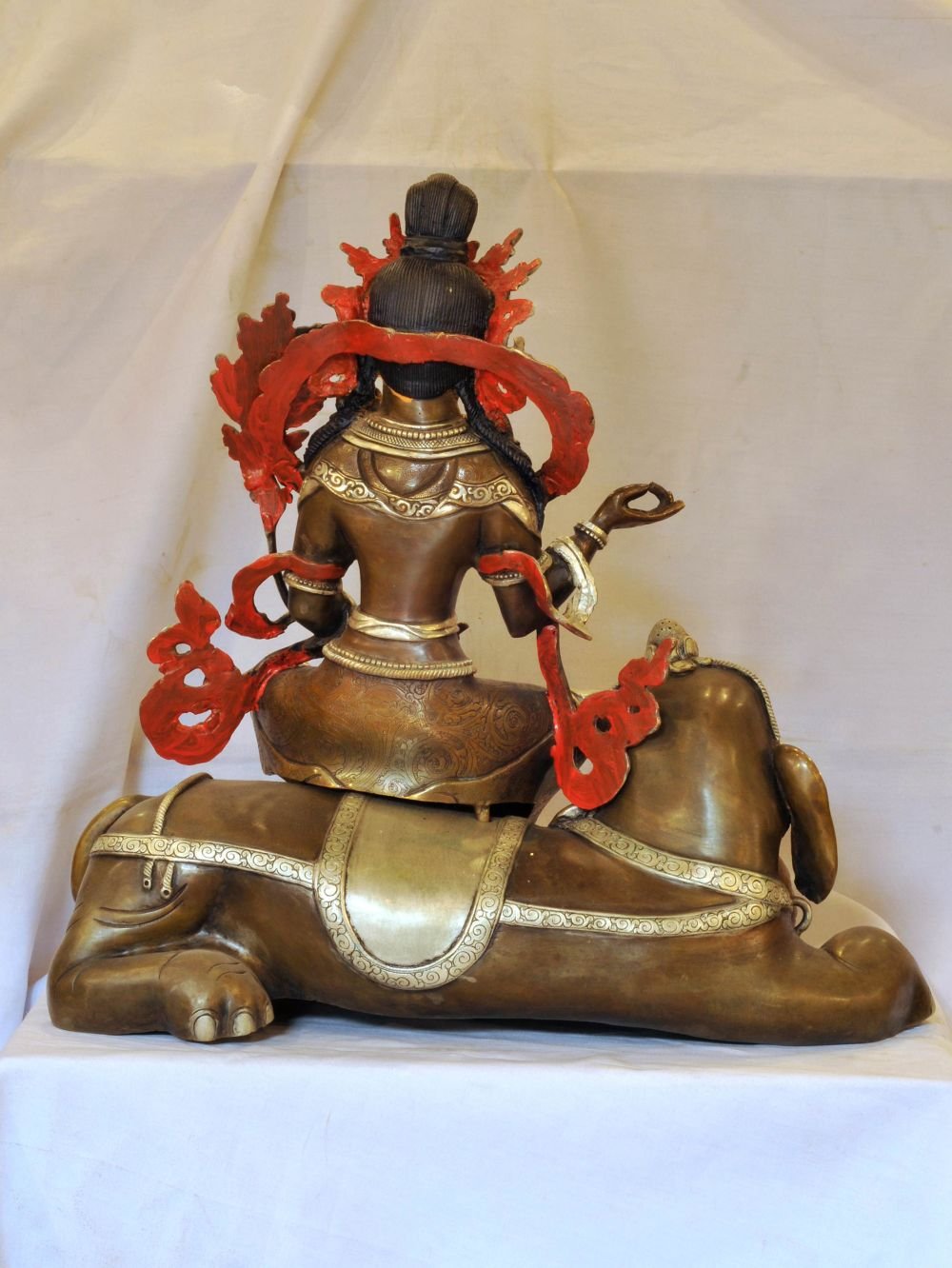 This Samantabhadra is made by the process of the Lost-Wax system. The lost-wax process, also known as investment casting, is a time-honored technique used to create metal sculptures. It involves several steps that have been practiced for thousands of years. Skilled artisans begin by sculpting a detailed wax model, capturing every intricate detail of the desired sculpture. The wax model is then coated with a ceramic shell, formed by multiple layers of ceramic material. Once the shell has cured, the wax is melted and drained out, leaving behind a cavity. Molten metal is poured into the cavity, creating a precise replica of the original wax model. After the metal has cooled and solidified, the ceramic shell is carefully removed, revealing the final metal sculpture. Read More