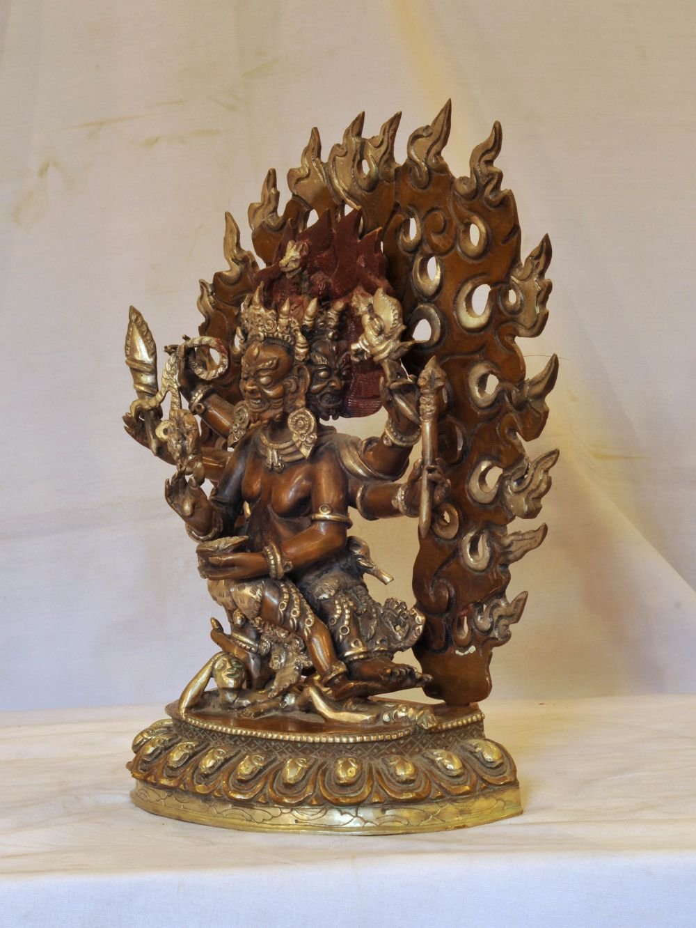 This Secret Accomplishment Hayagriva is made by the process of the Lost-Wax system. The lost-wax process, also known as investment casting, is a time-honored technique used to create metal sculptures. It involves several steps that have been practiced for thousands of years. Skilled artisans begin by sculpting a detailed wax model, capturing every intricate detail of the desired sculpture. The wax model is then coated with a ceramic shell, formed by multiple layers of ceramic material. Once the shell has cured, the wax is melted and drained out, leaving behind a cavity. Molten metal is poured into the cavity, creating a precise replica of the original wax model. After the metal has cooled and solidified, the ceramic shell is carefully removed, revealing the final metal sculpture. Read More