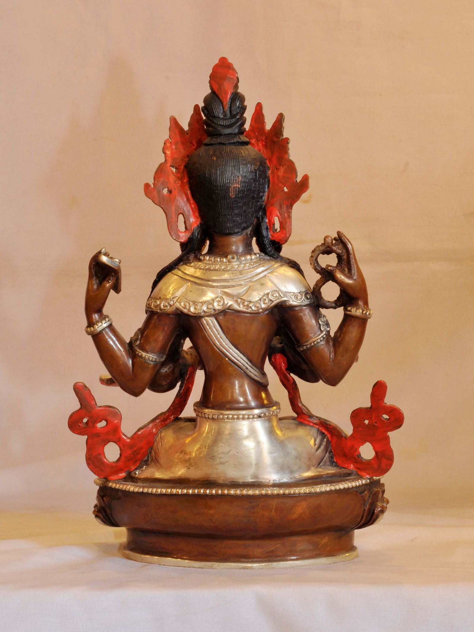 Buddhist Handmade Statue of Chenrezig, Face Painted, Silver and Chocolate Oxidized , Bodhisattva of Compassion, Protector of All Beings