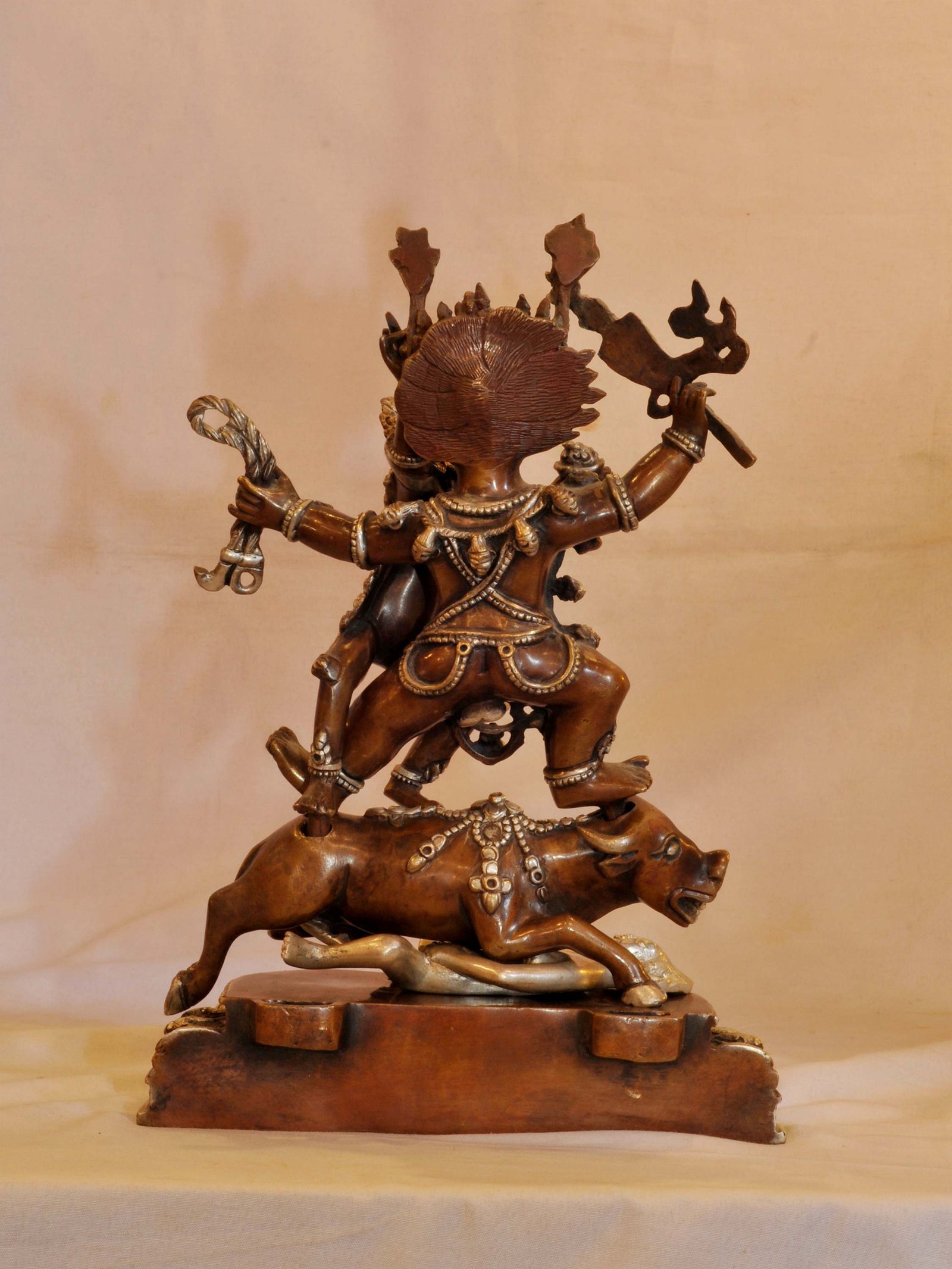 Buddhist Handmade Statue of Yamantaka Shakti Or Consort, Silver and Chocolate Oxidized, Megasambhara, Vajrabhairava Heruka , wrathful destroyer of ignorance