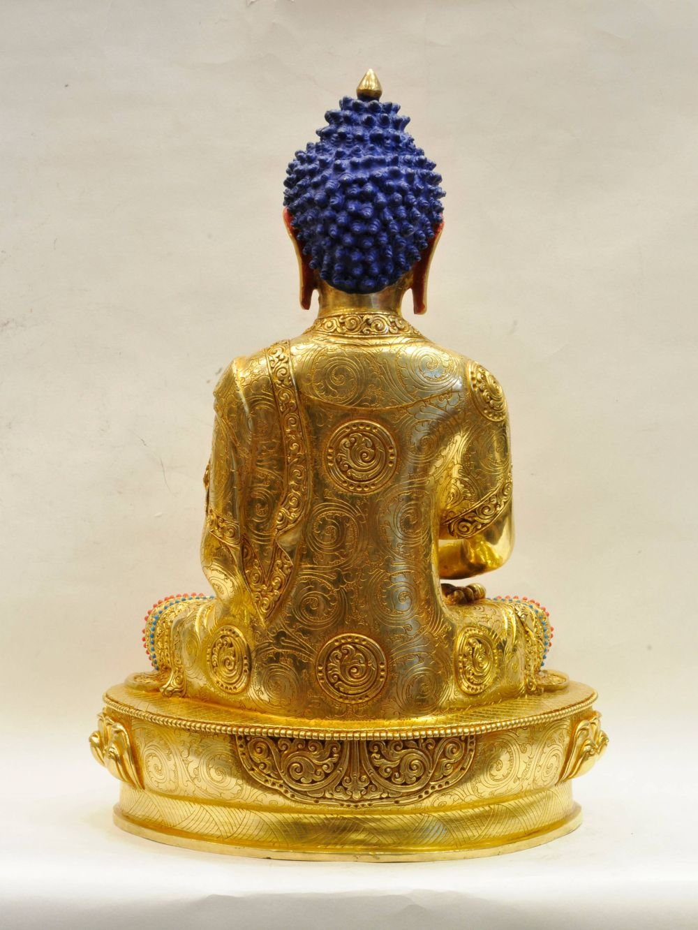Buddhist Handmade Statue of Amitabha Buddha, Full Fire Gold Plated, Face Painted, Stone Setting , Buddha of Infinite Light: Symbol of Boundless Compassion