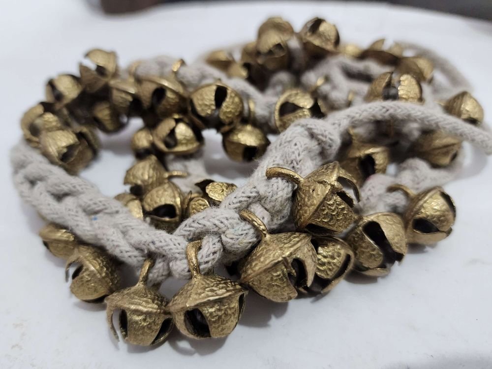 The number of bells in a ghungroo can vary, ranging from 50 to over 200 bells per pair. The bells themselves are made of brass, copper, or bronze, and are often embellished with designs or engravings.
