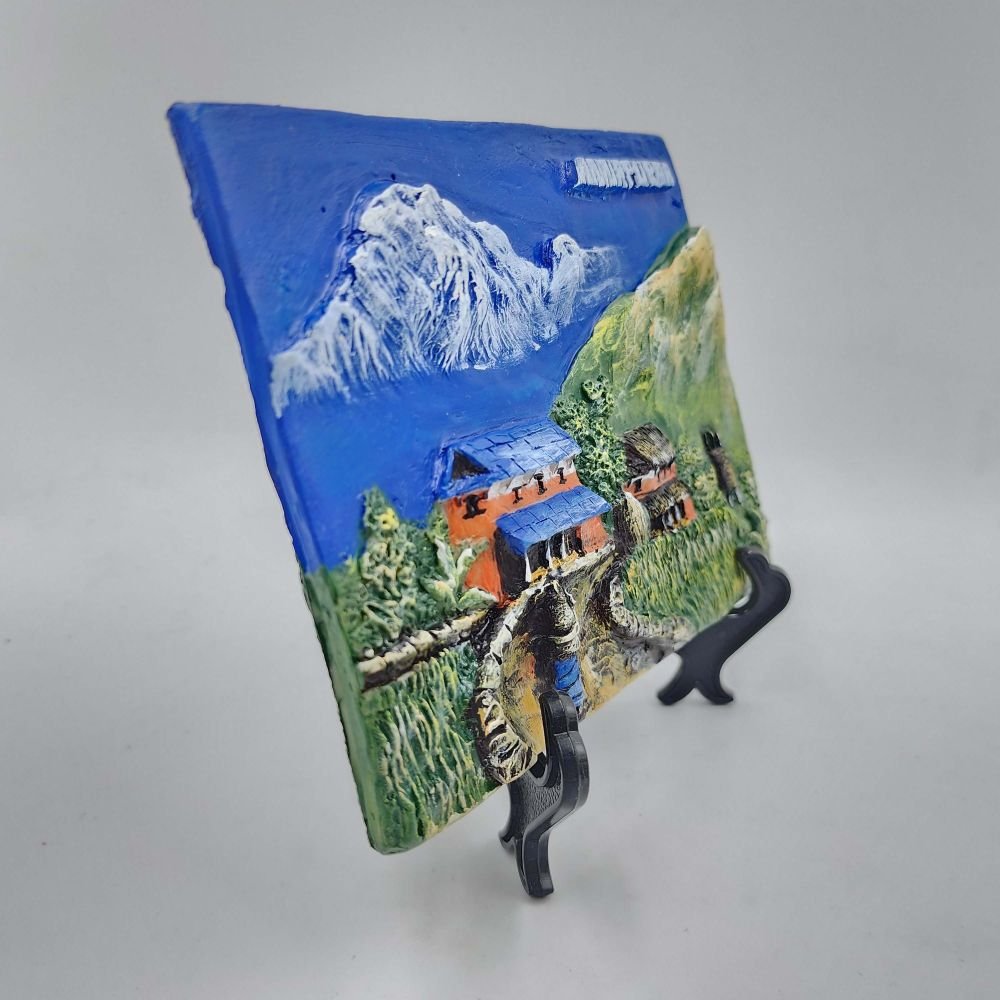 3D Fiber Art of Annapurna Himal and Village of Nepal with Stand and Wall Hanger |