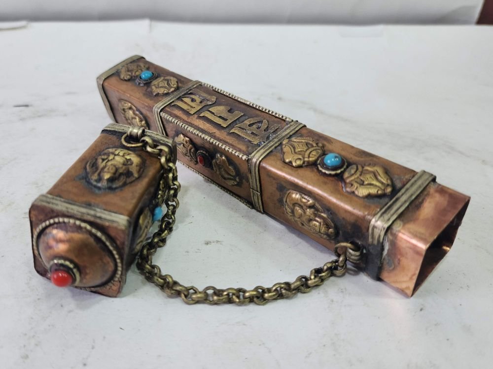 Nepali metal incense holders come in various shapes and sizes. Some common designs include cylindrical containers with lids, lotus-shaped holders, or intricate carved boxes. These holders are specifically designed to hold incense sticks, keeping them secure and providing a stable base for burning.