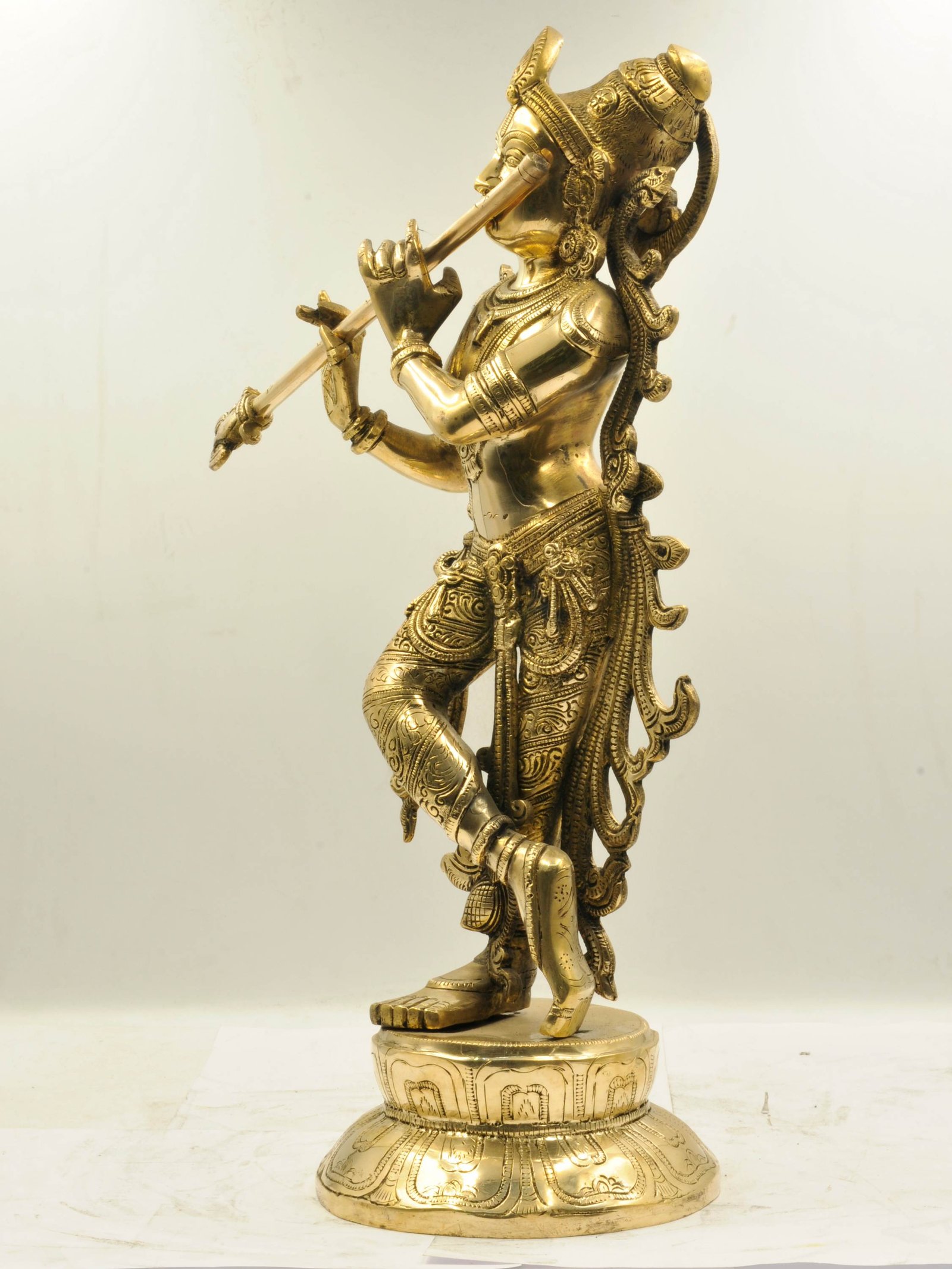 This Krishna has been created using the sand casting system, also known as sand molding casting. This widely employed manufacturing process utilizes a sand mold to produce metal products and components in various sizes and shapes. Sand casting holds significant popularity in the industry, accounting for approximately 60% of all metal castings. The sand casting process involves six primary steps. First, a pattern or replica of the desired sculpture, in this case, Krishna, is created using a material like wood or metal. The pattern is then placed in a flask, which is a box-like structure divided into two halves. The next step involves packing the flask tightly with specially formulated molding sand, creating a mold cavity that matches the shape of the pattern. The pattern is subsequently removed, leaving behind a negative impression of the sculpture within the sand mold. Read More