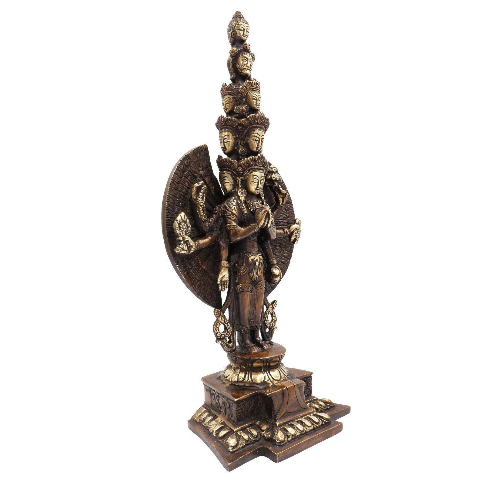 Buddhist Statue of Sahasrabhuja Avalokitesvara, Sand Casting, Chocolate Oxidized |
