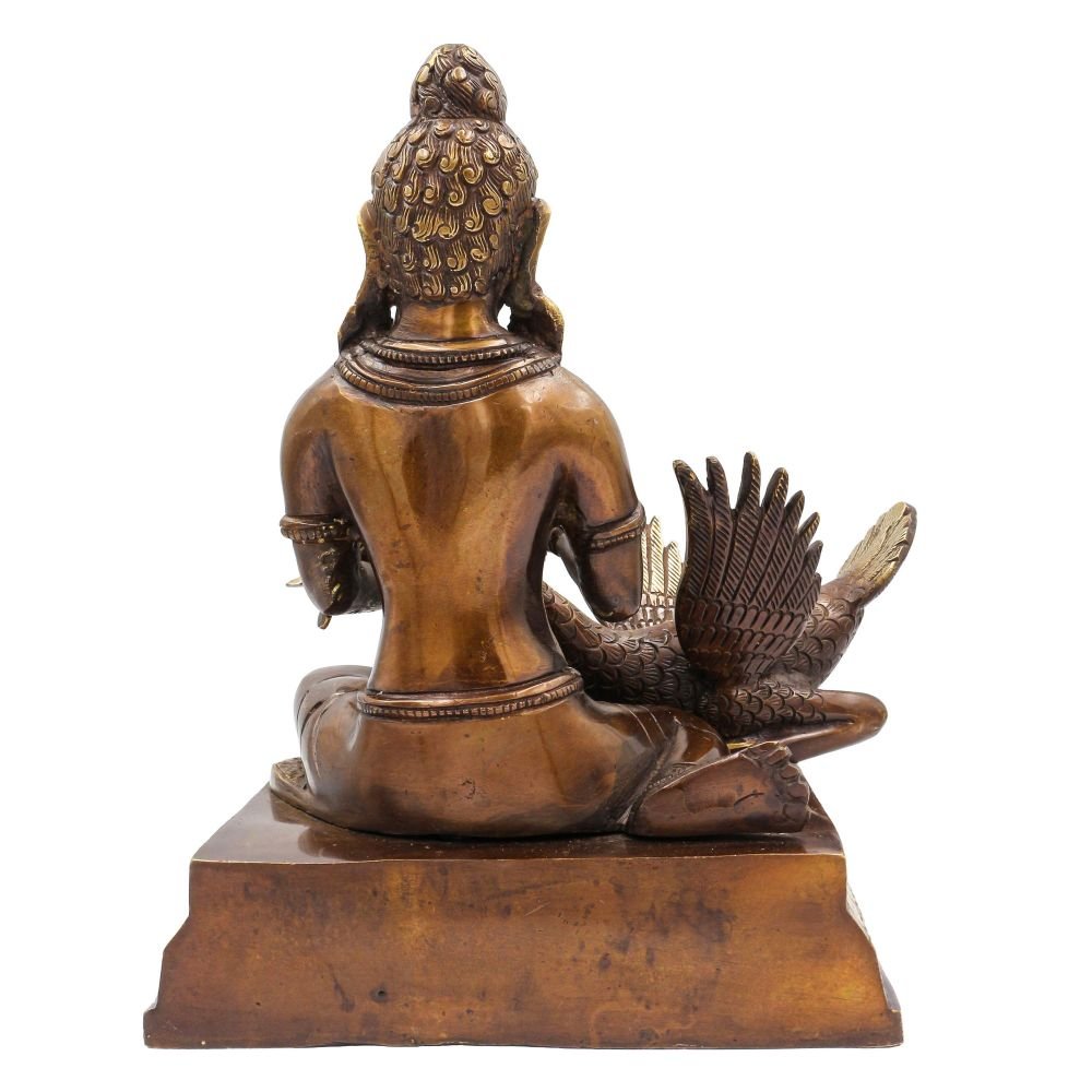 This Buddha has been meticulously treated with a chocolate color antique patina. The intention behind this patina is to replicate the appearance of a copper statue that has gracefully aged over a century. Unlike a simple coat of paint, this patina is not applied superficially and is designed to endure. It undergoes an artificial oxidation process that adds depth and character, while also serving as a protective layer against natural oxidation.