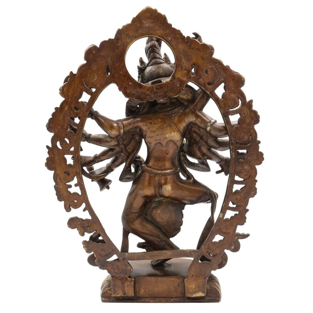 This Sahasrabhuja Avalokitesvara has been meticulously treated with a chocolate color antique patina. The intention behind this patina is to replicate the appearance of a copper statue that has gracefully aged over a century. Unlike a simple coat of paint, this patina is not applied superficially and is designed to endure. It undergoes an artificial oxidation process that adds depth and character, while also serving as a protective layer against natural oxidation.