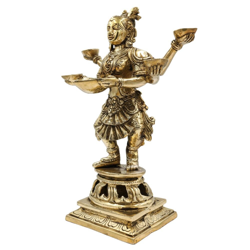 Nepali Statue of Oil Lamp, Sand Casting, Glossy Finishing |