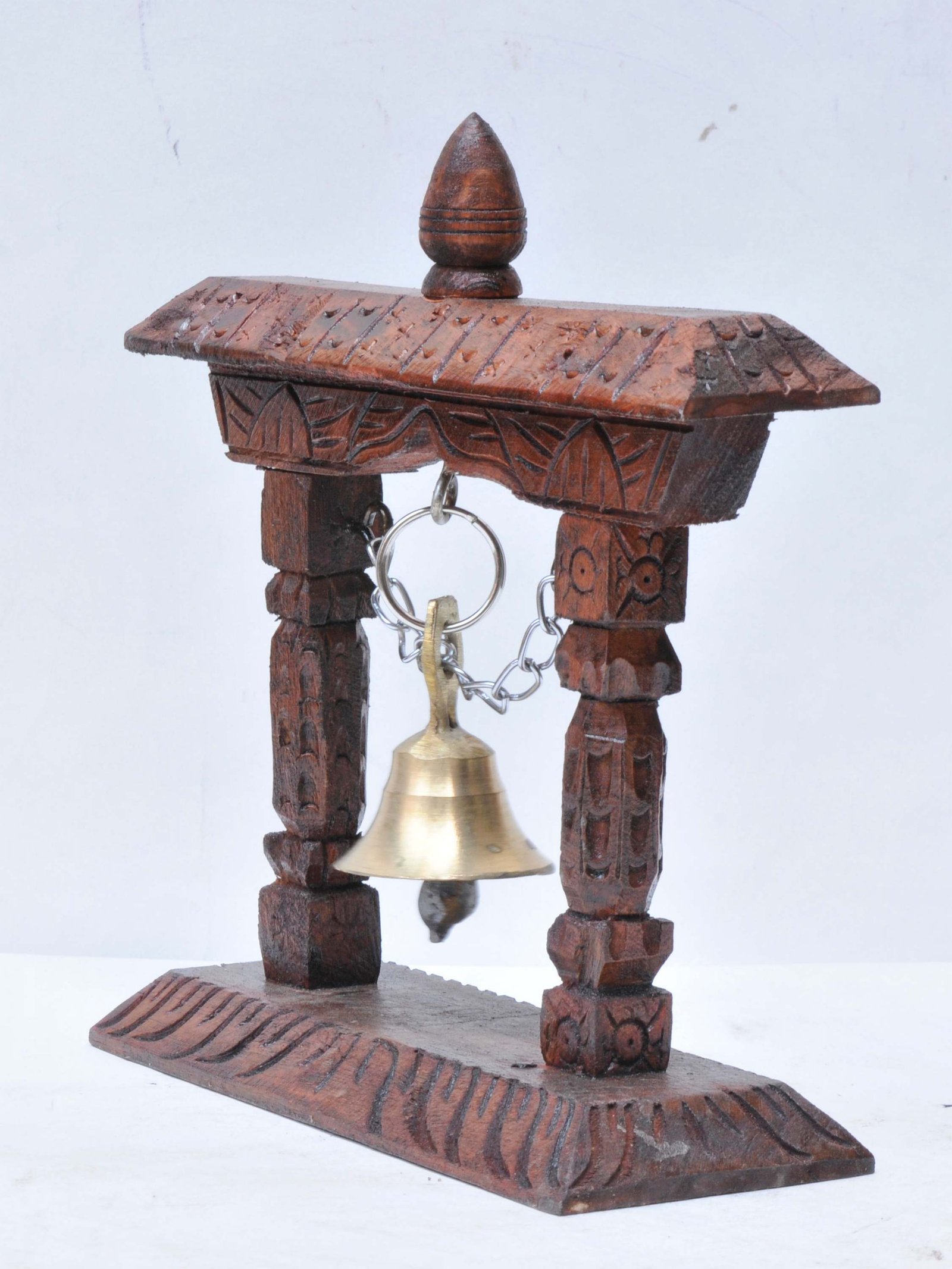 Buddhist Handmade Traditional Table Bell On Wooden Frame , dispelling ignorance and marking the beginning of spiritual practice