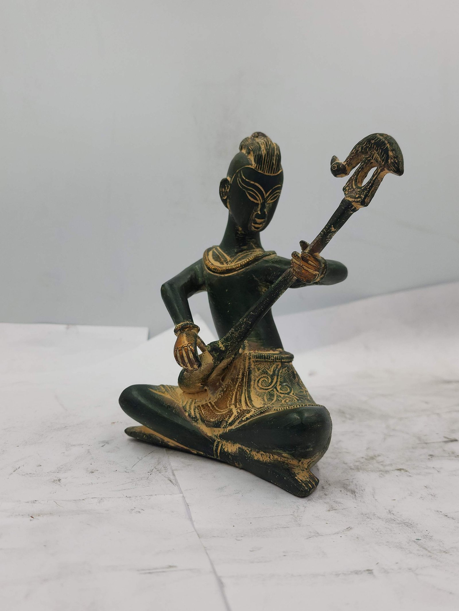 Statue of A Lady Playing Sitar, Musical Instrument, Sand Casting |