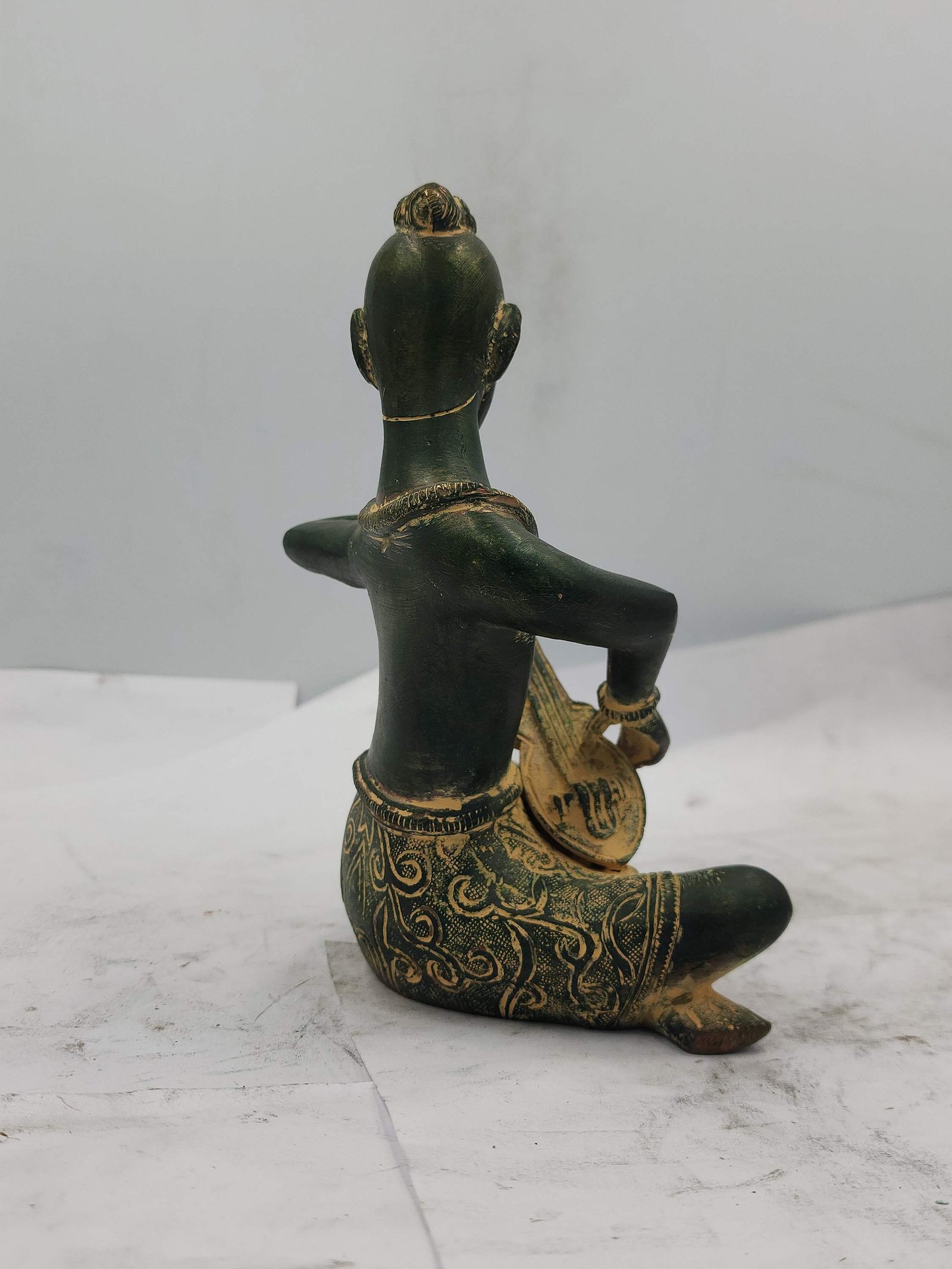 This statue is expertly crafted from high-quality brass, with intricate details that make it a true work of art. The celestial musician is depicted playing a traditional Indian musical instrument, with flowing robes and delicate features that add to the statue's elegance and beauty.