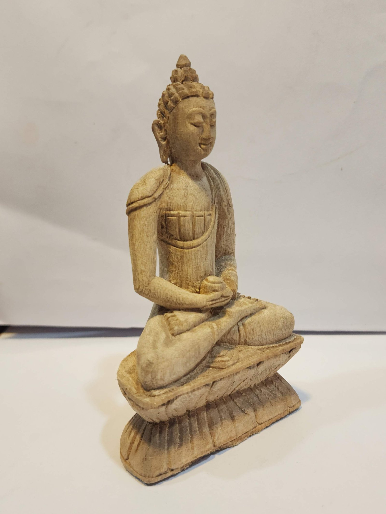 Buddhist Handmade Wooden Statue of Amitabha Buddha, Camphor Wood , Buddha of Infinite Light: Symbol of Boundless Compassion