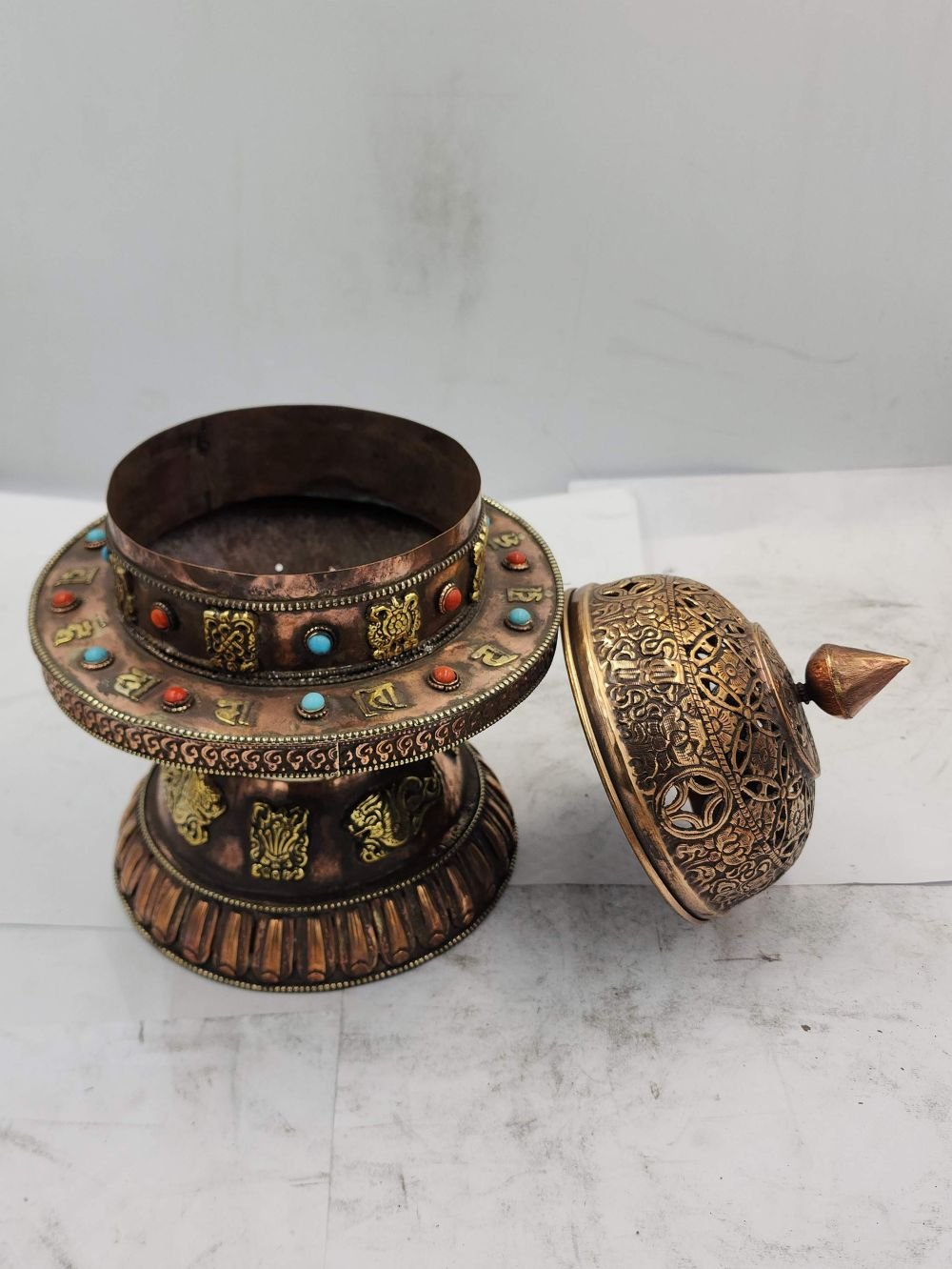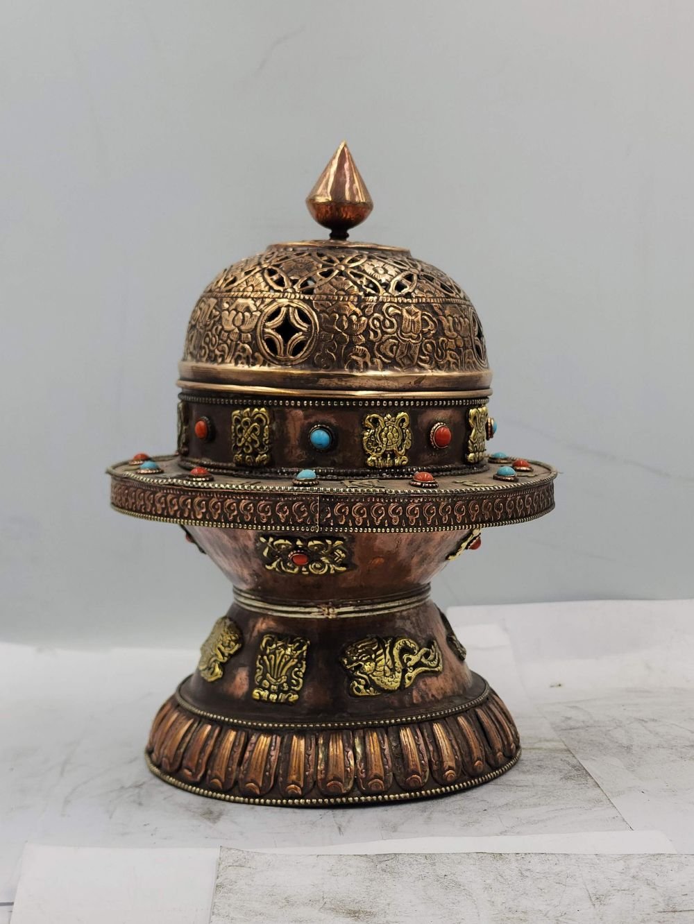 Buddhist Handmade Incense Burner, Sand Casting, Stone Setting , Sacred monument, representing the enlightened mind of the Buddha