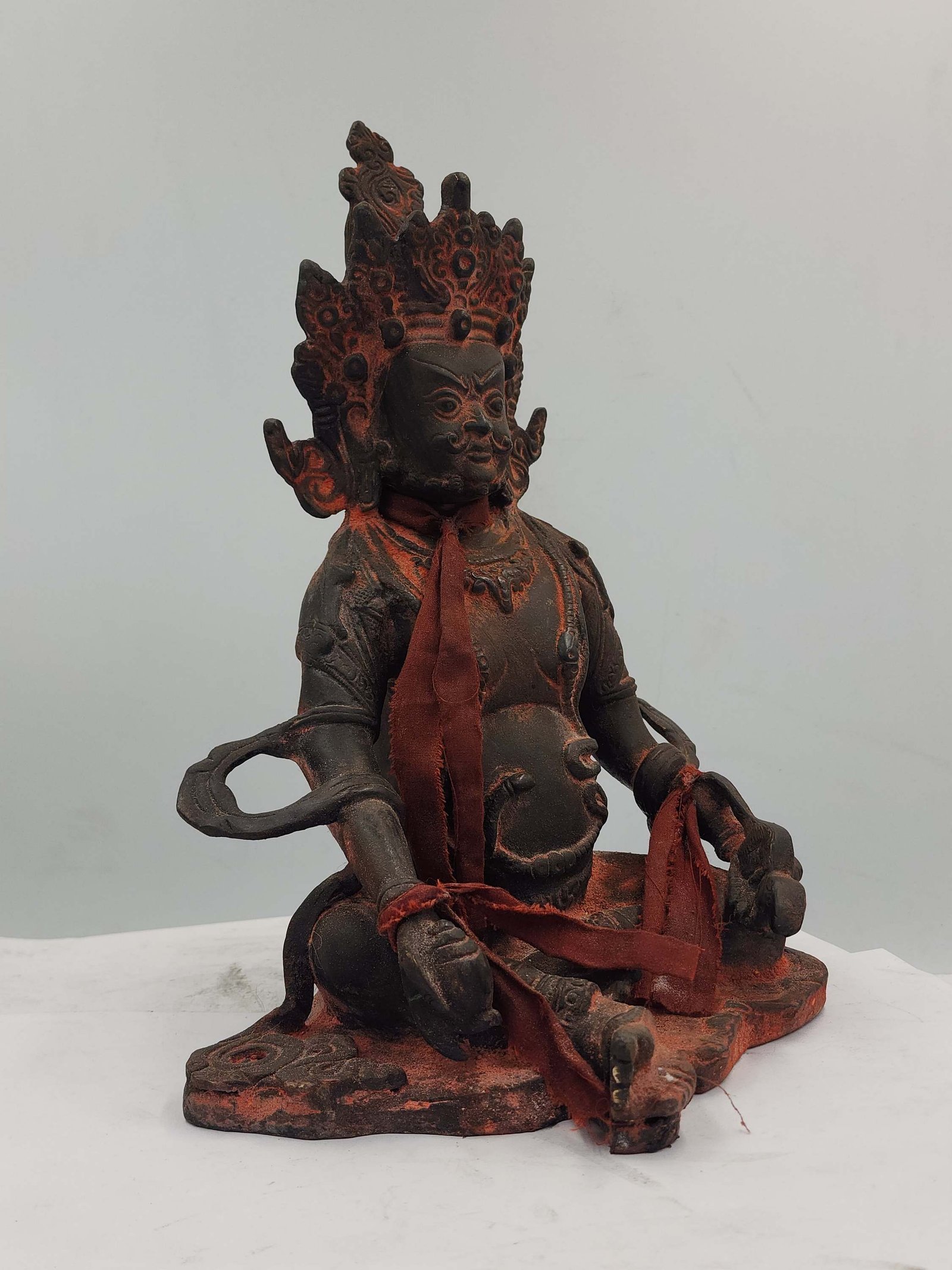 The Yellow Jambhala features a stunning full dark chocolate color oxidation finish, exuding an air of elegance and sophistication. This exquisite oxidation process involves treating the surface of the Yellow Jambhala to create a rich, deep brown color reminiscent of decadent chocolate. Through careful application and controlled oxidation, the statue achieves a uniform and lustrous dark chocolate hue. This captivating finish enhances the intricate details and textures of the Yellow Jambhala, adding depth and dimension to its overall appearance. Read More