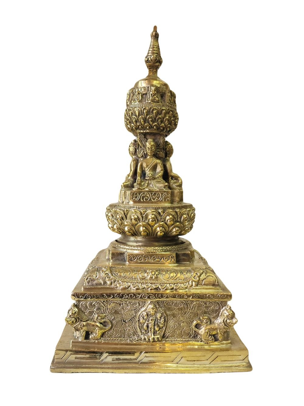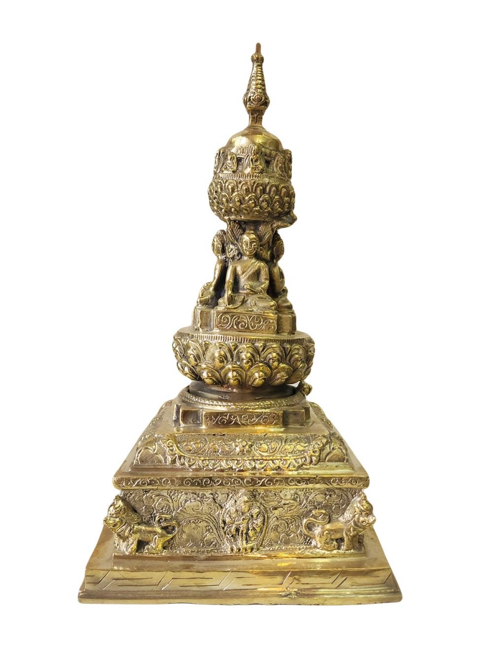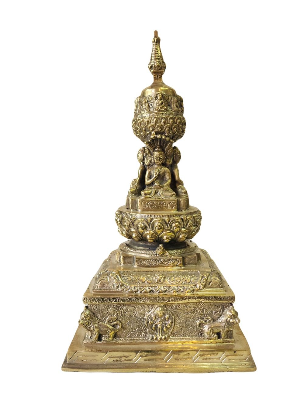 Buddhist Newari Stupa with Buddhas Detachable , Sacred monument, representing the enlightened mind of the Buddha